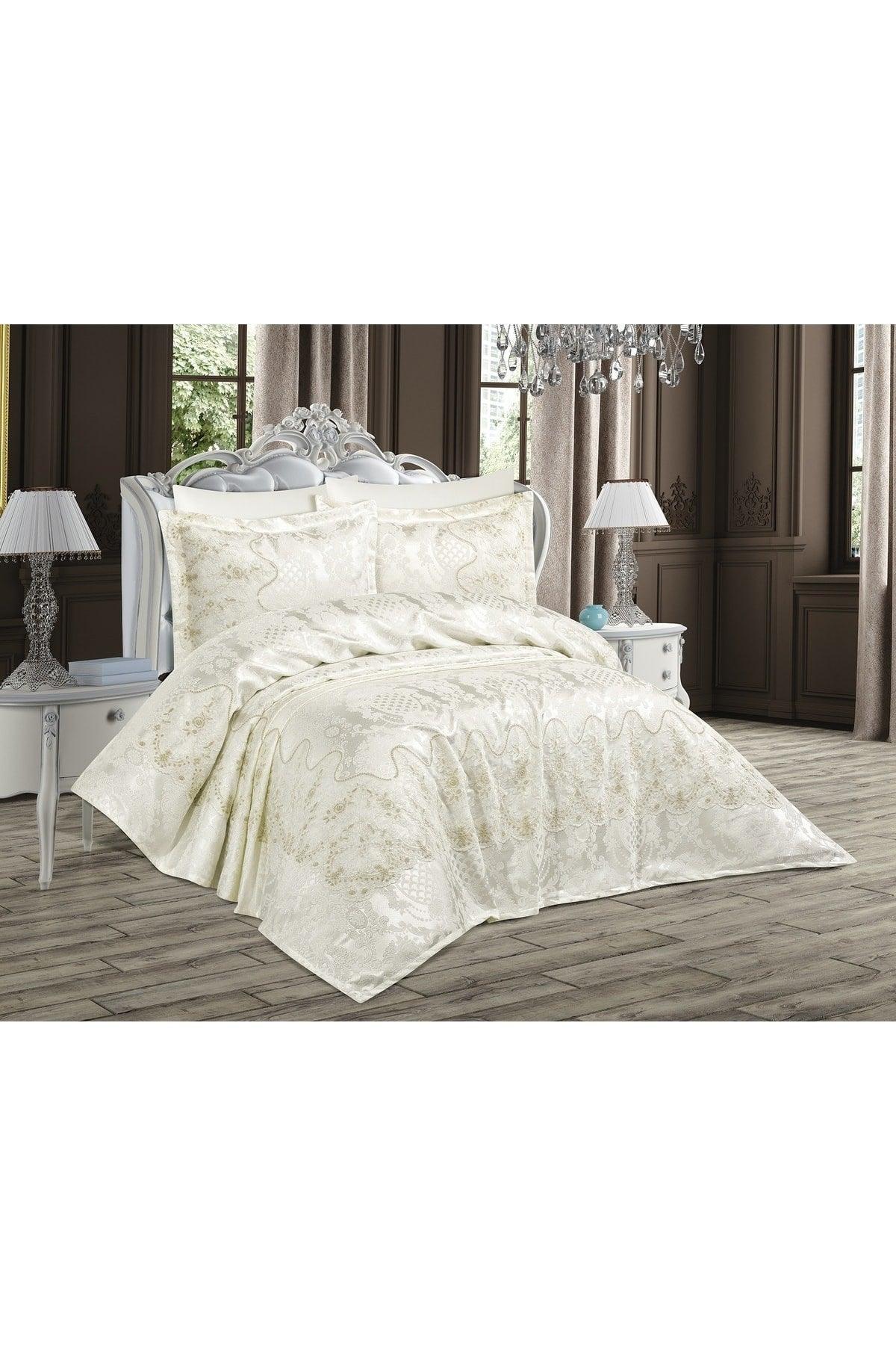 Alya 3 adet kremalı yatak örtüsü seti çift (yatak örtüsü + 2 yastık)