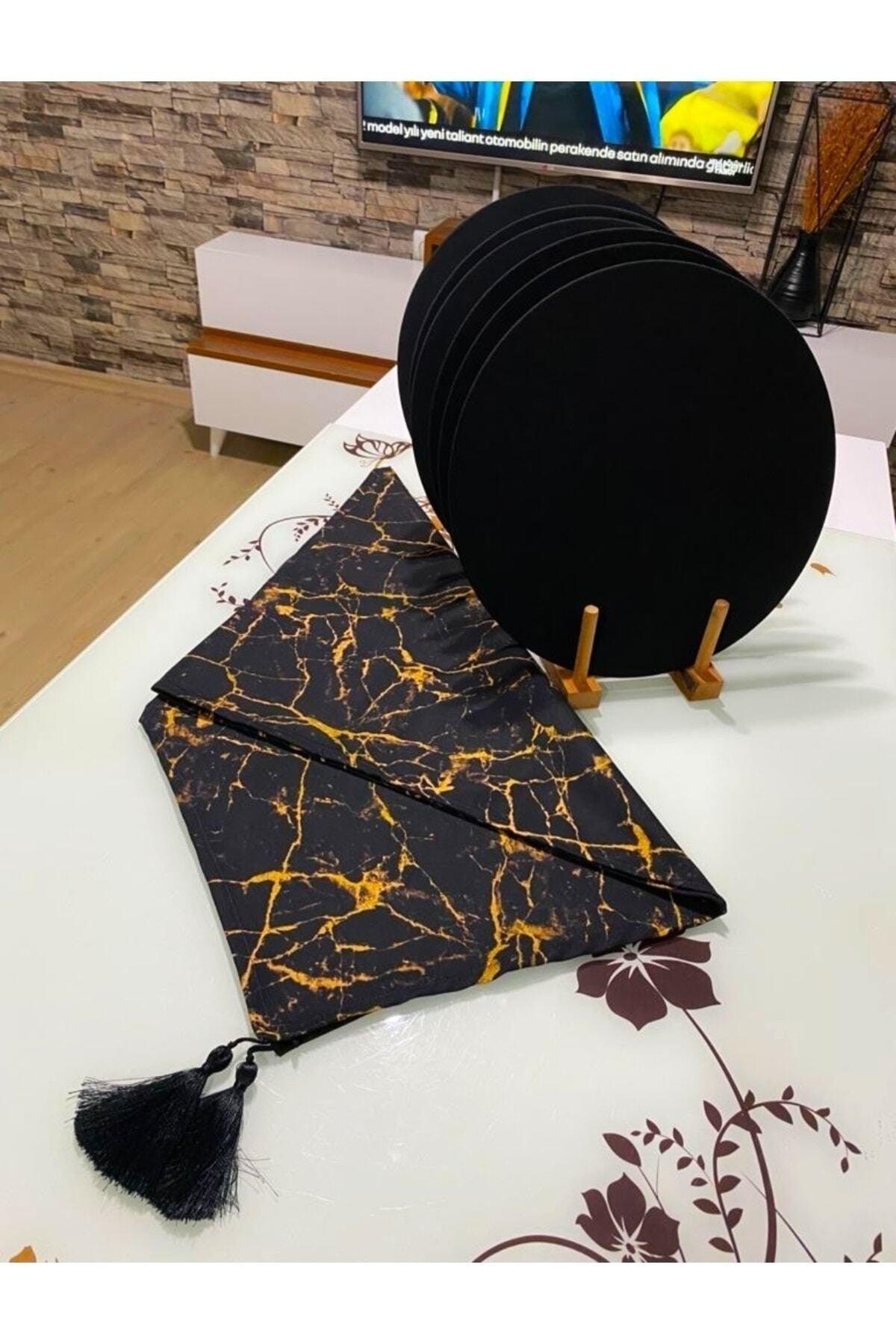 American Runner Service 6 Pieces Black Leather Detailed Cord Supla Knitted Dowery Set Plate Base Fireproof - Swordslife
