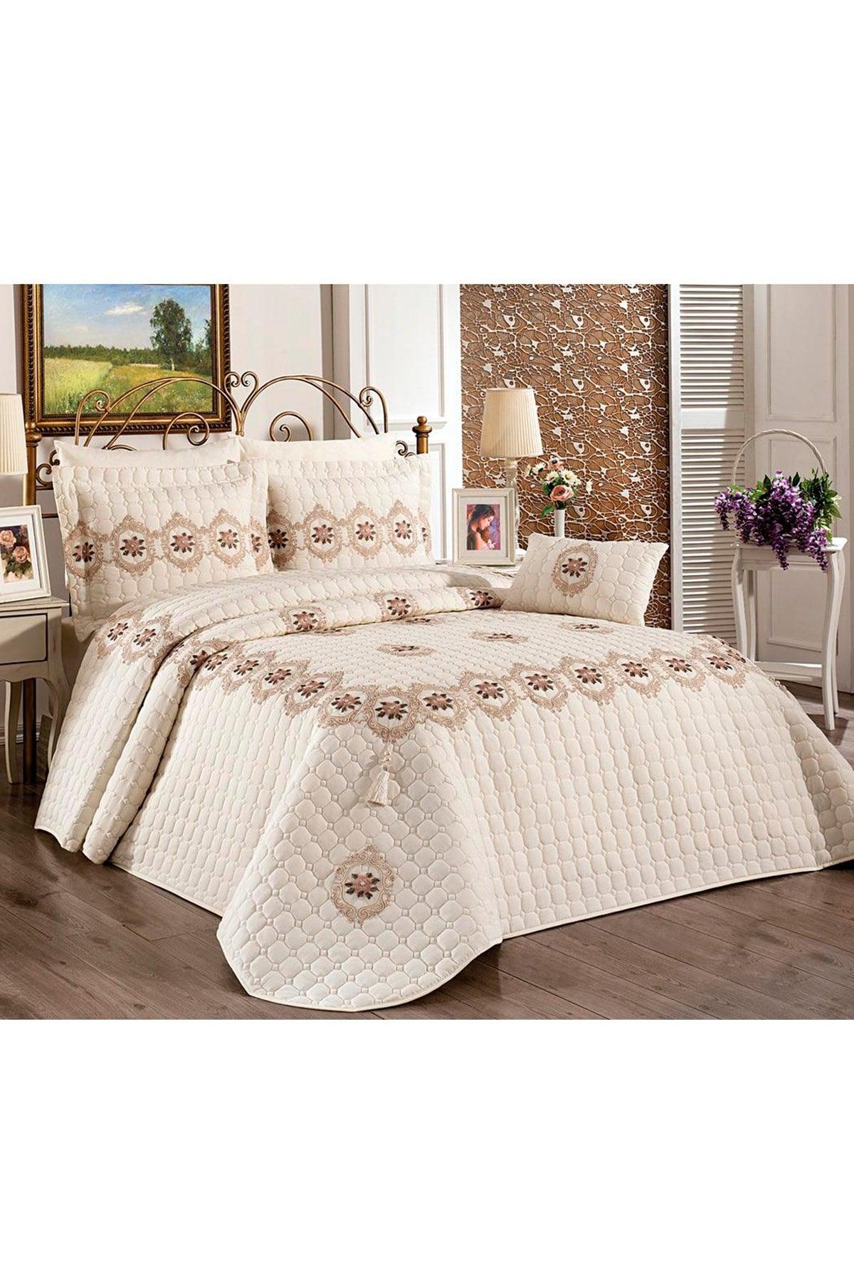Antik Elmas Kabartmalı Jakar Çift Yorgan Kapak Seti 200x220 cm Terracotta