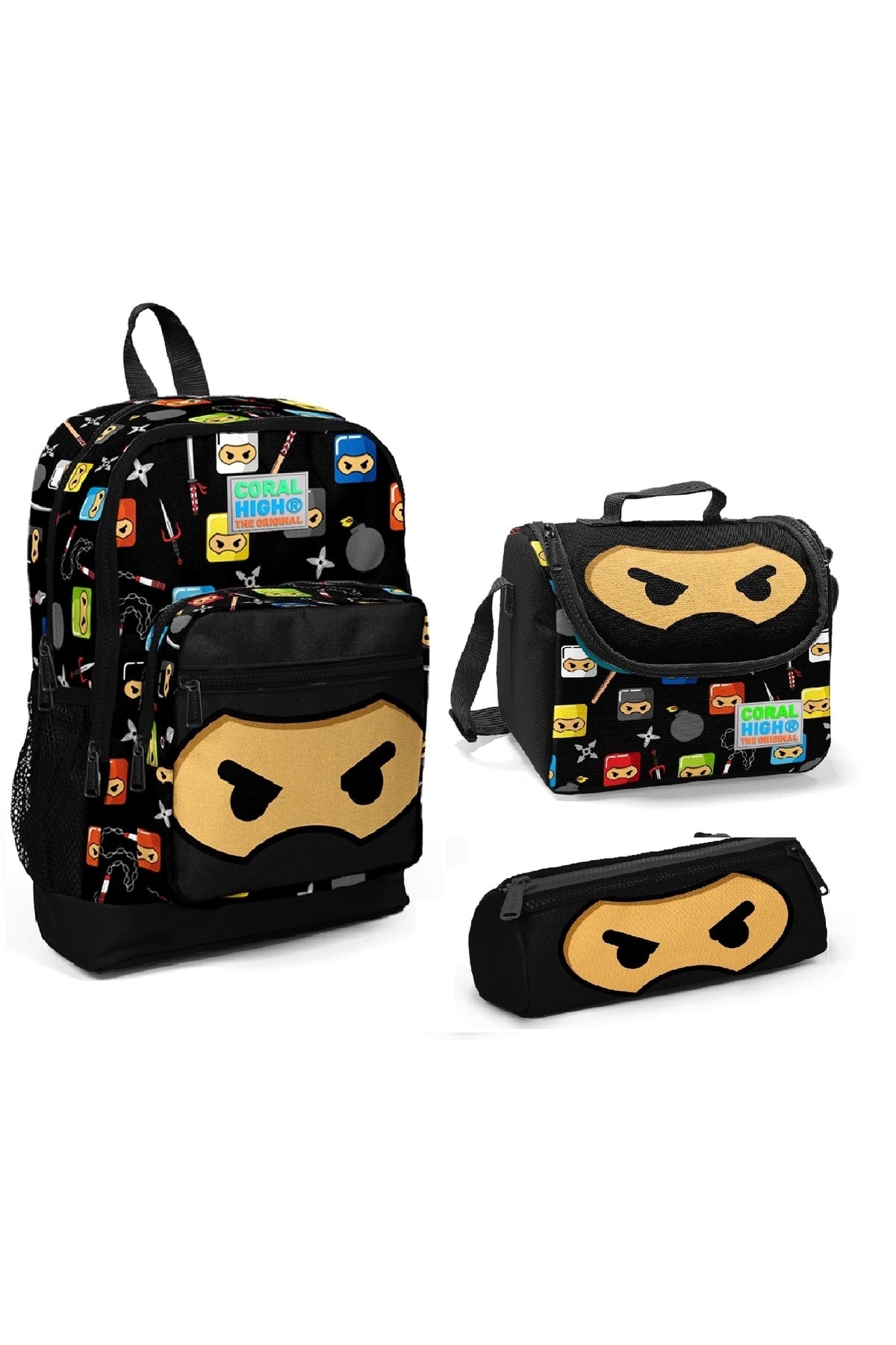 Kids Four Compartment Ninja Patterned 3-Piece School Bag Set