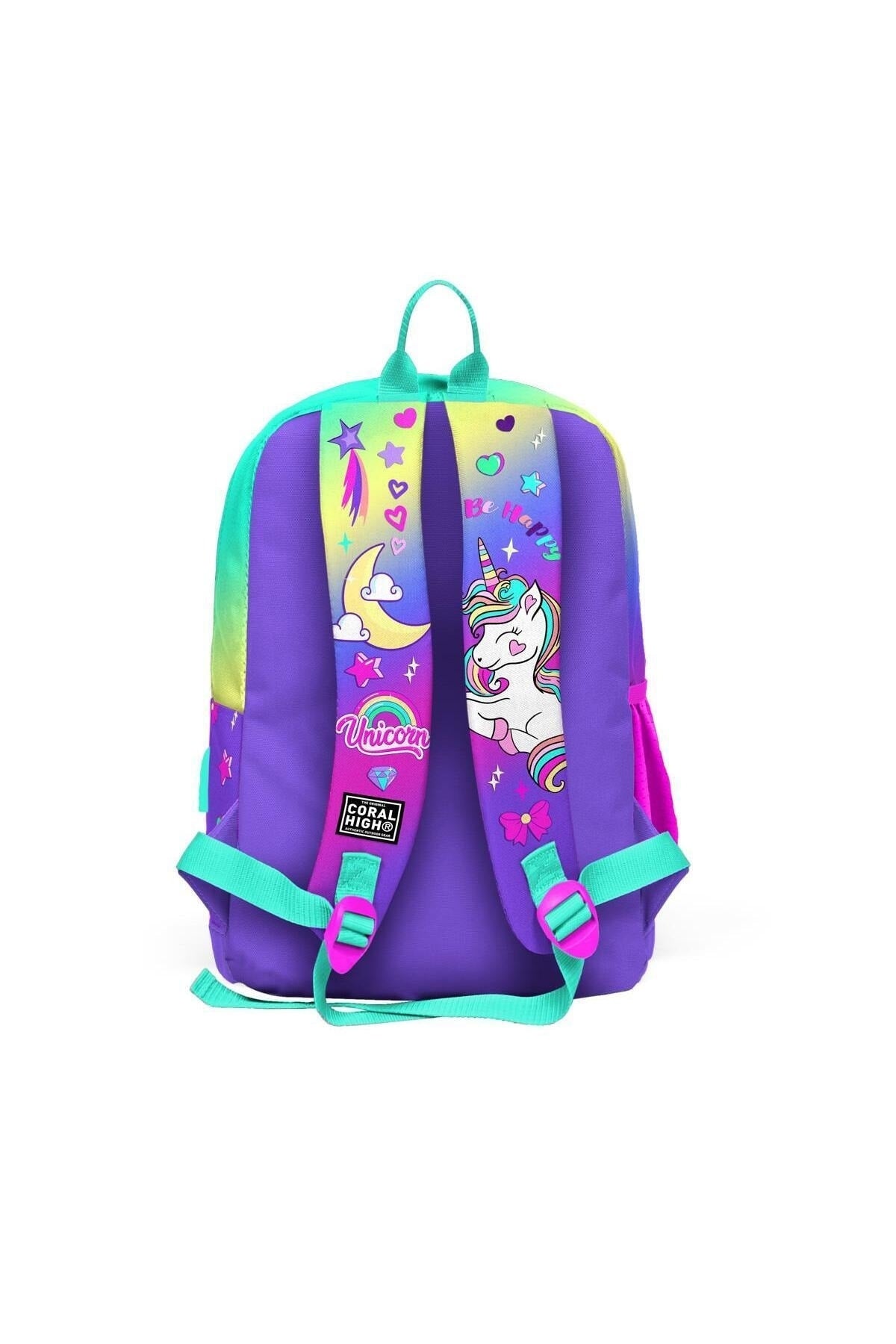 Kids Lavender Water Green Unicorn Patterned Usb 3 Pcs School Bag Set