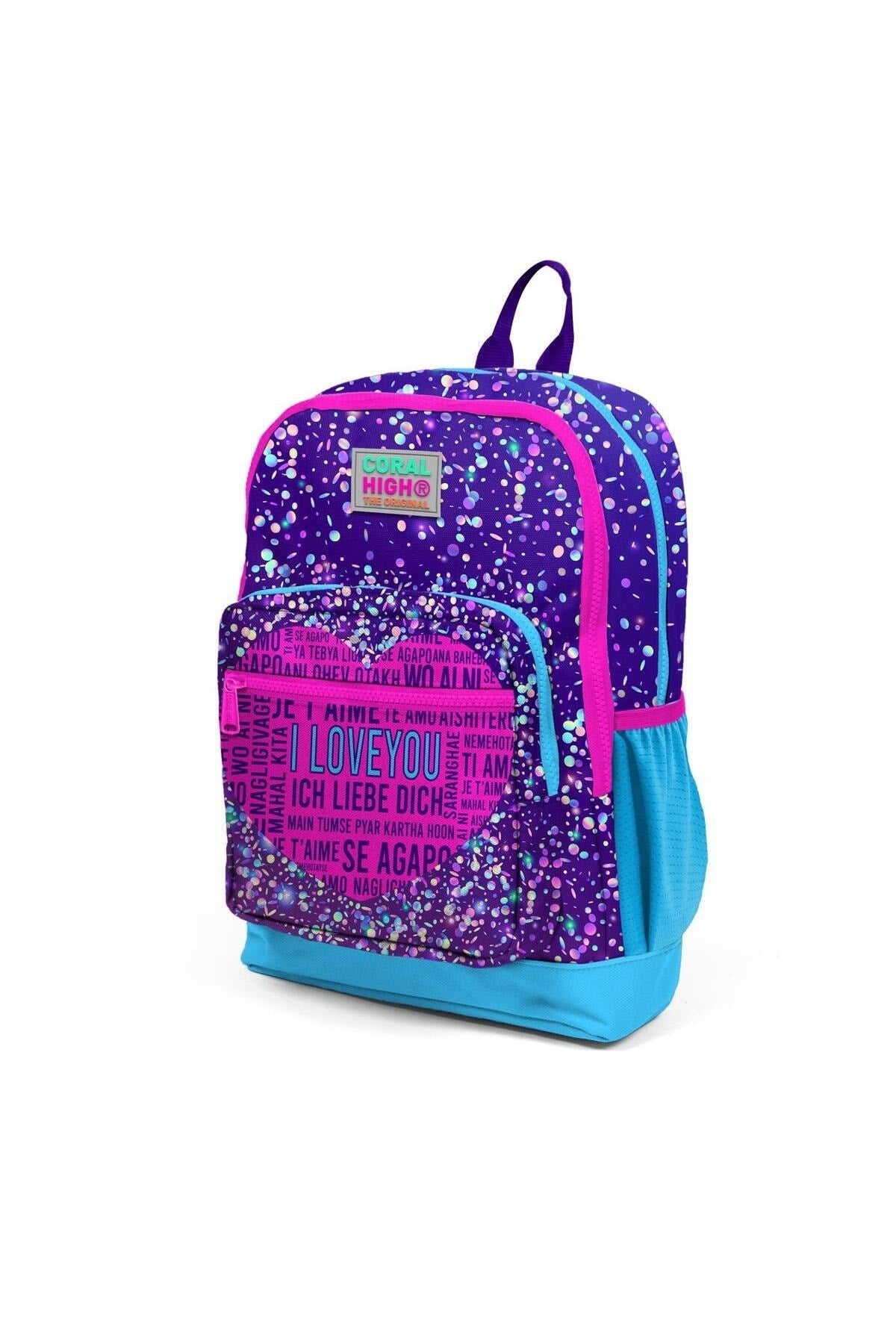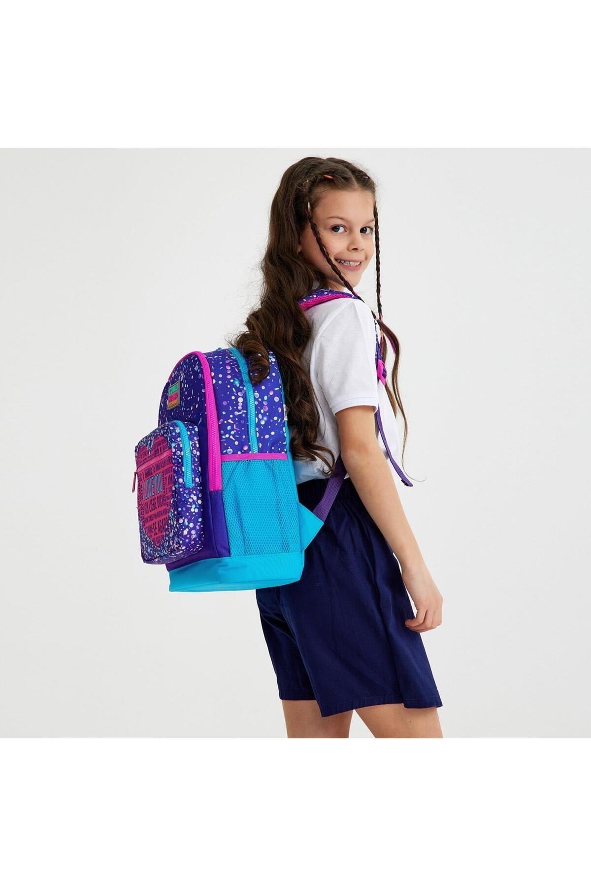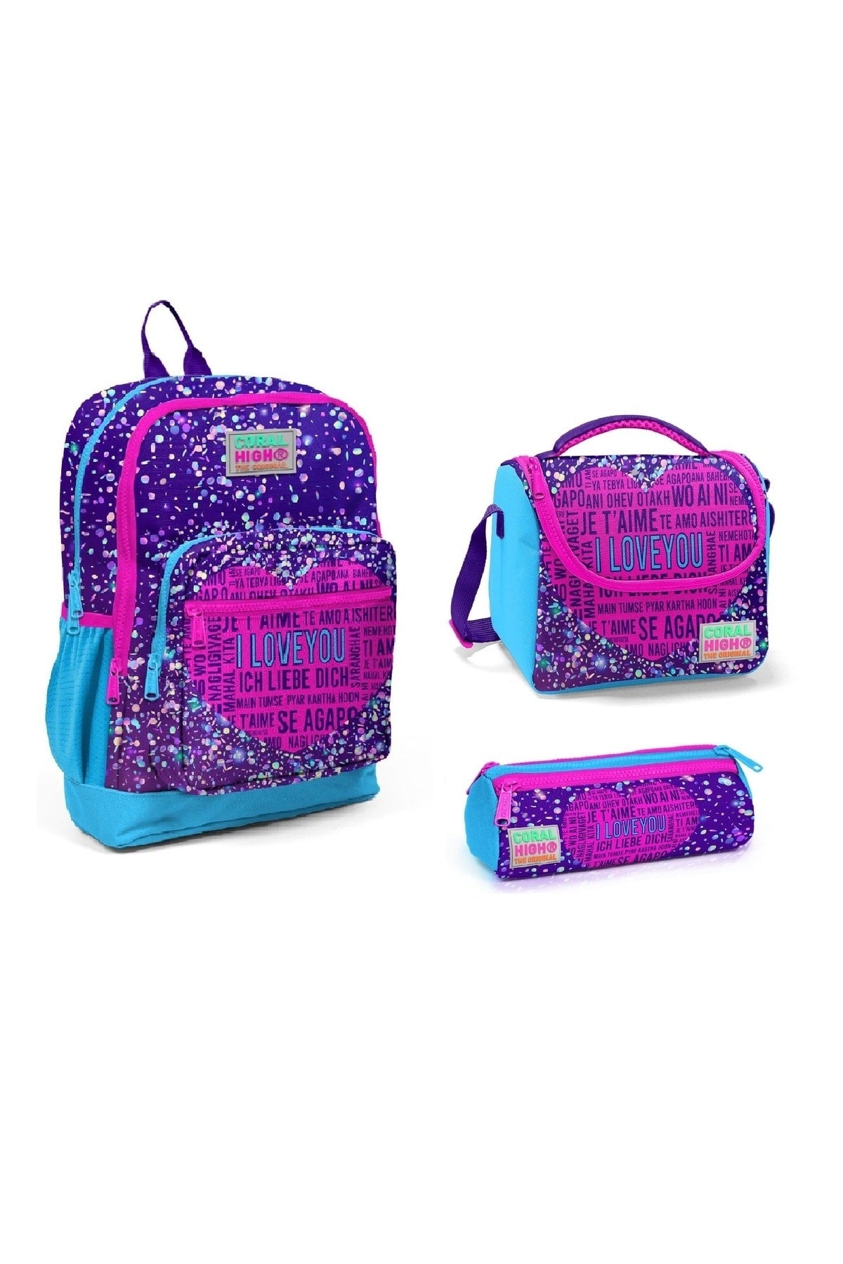 Kids Purple Blue Pink Heart Patterned 3-Pack School Bag Set