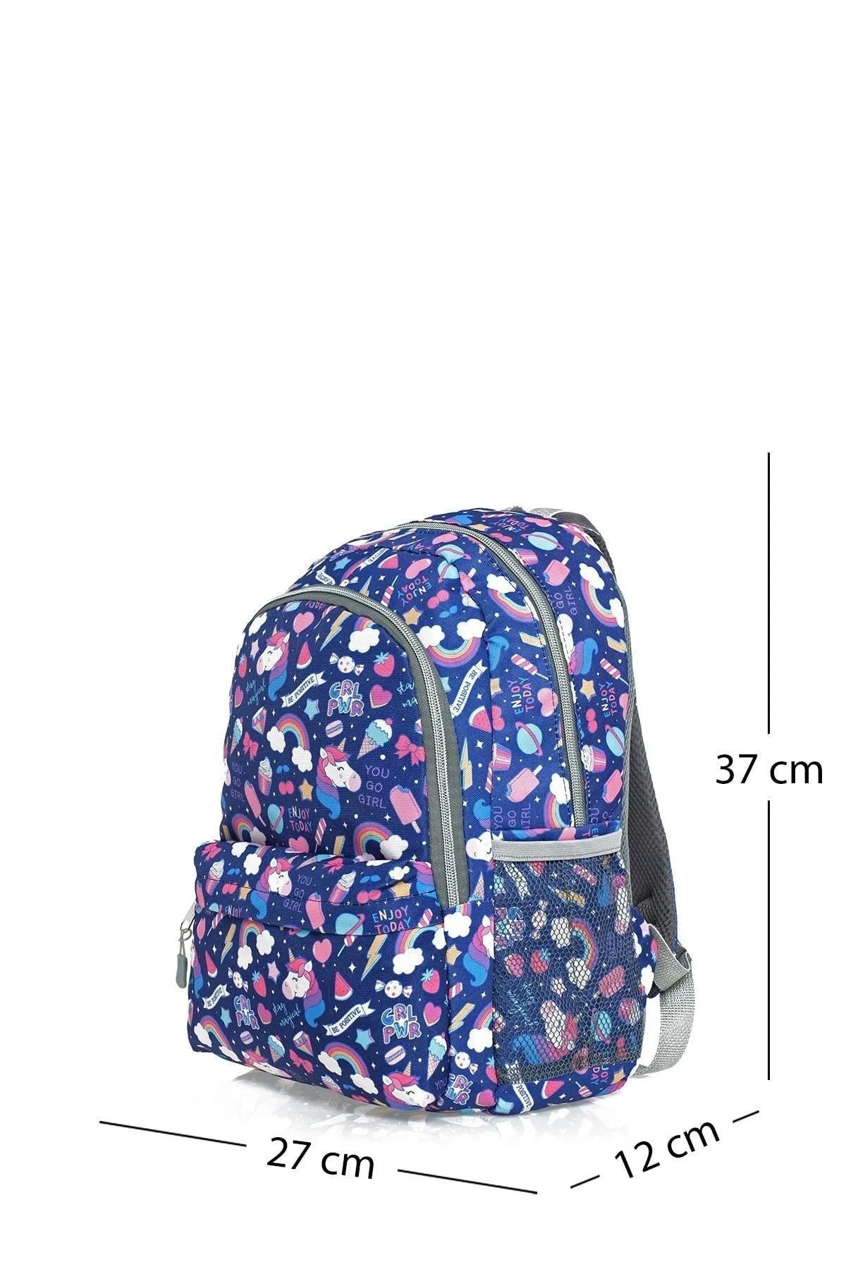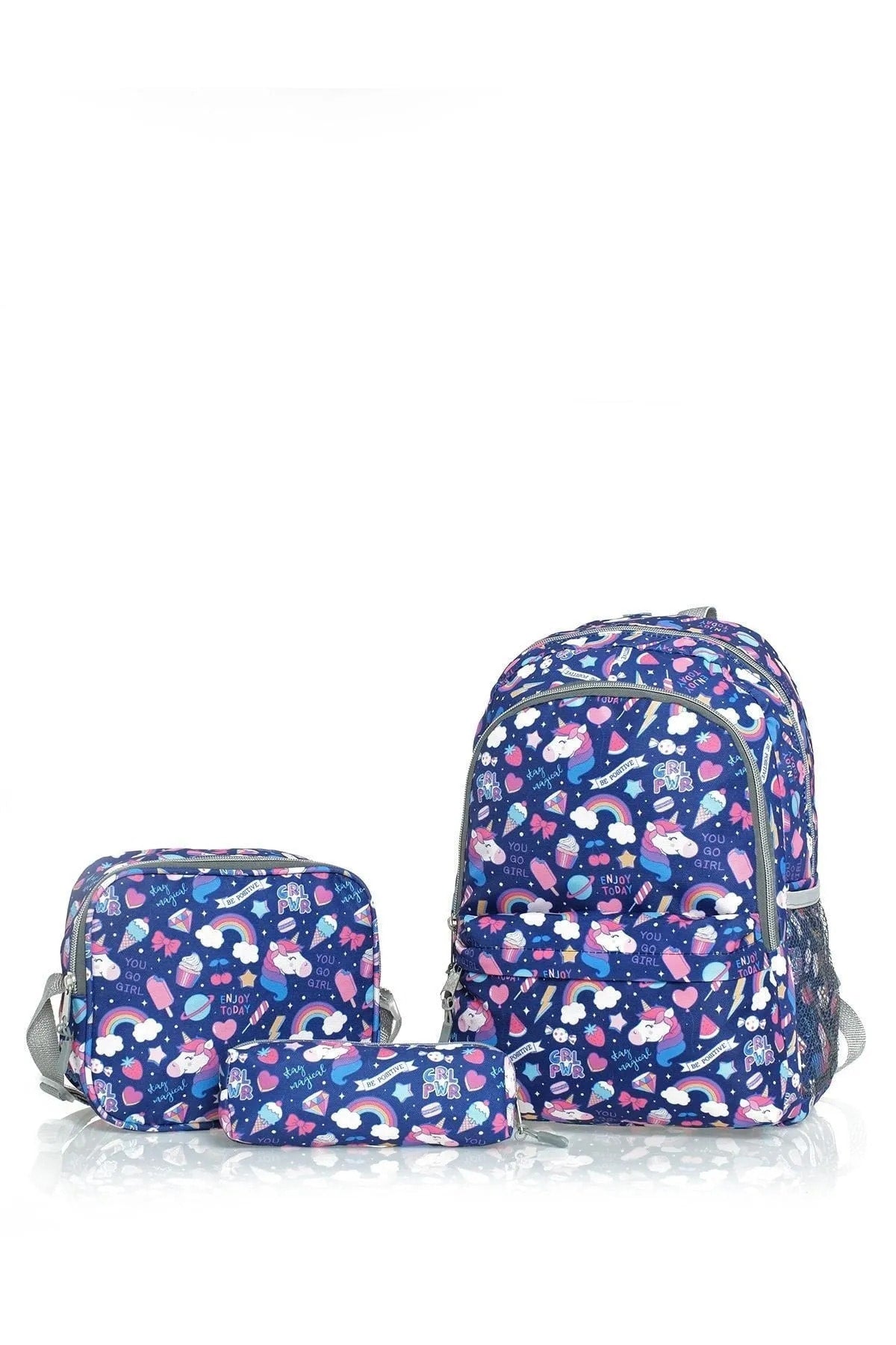 Navy Blue Unicorn Patterned Triple Primary School Bag Set