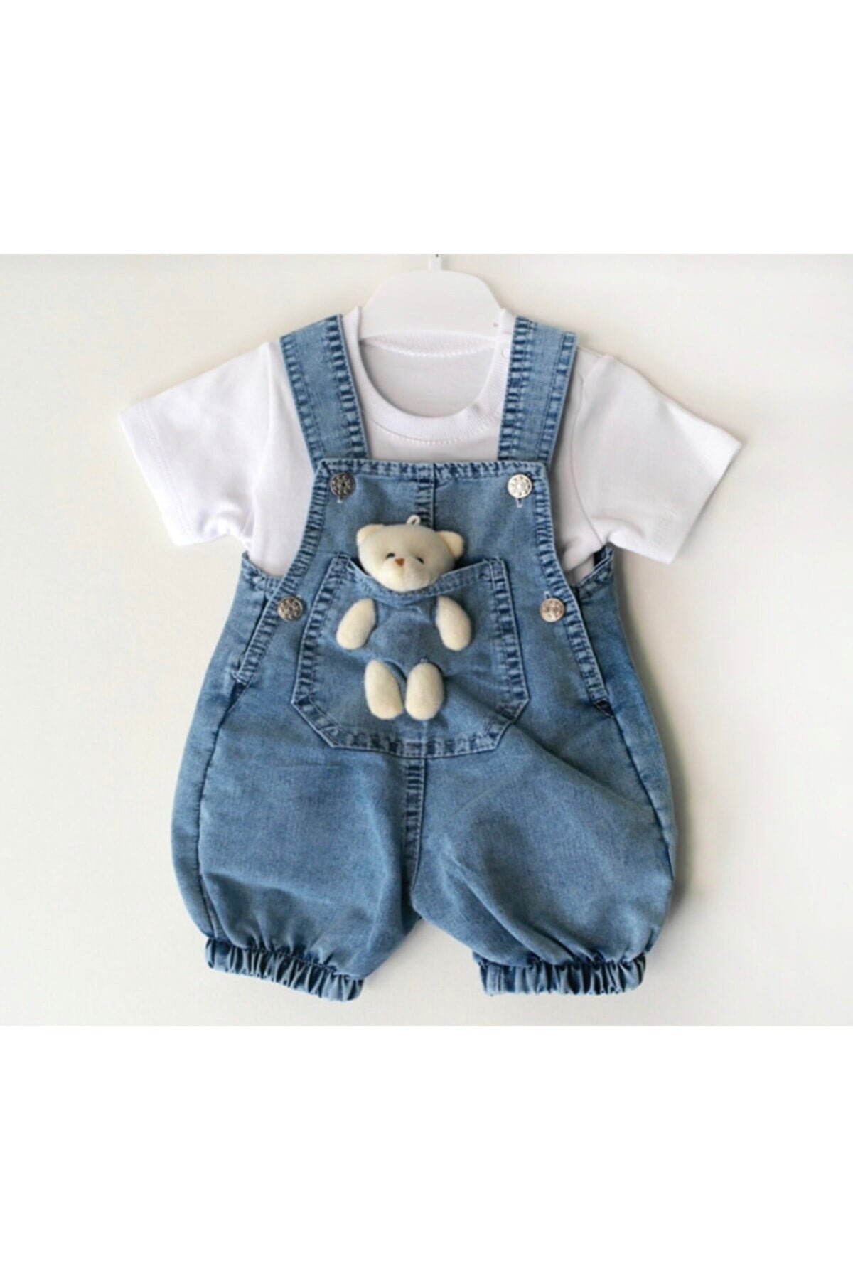 2-Piece Baby Denim Slopet Set With Toy Visual Short Sleeves And Short Legs