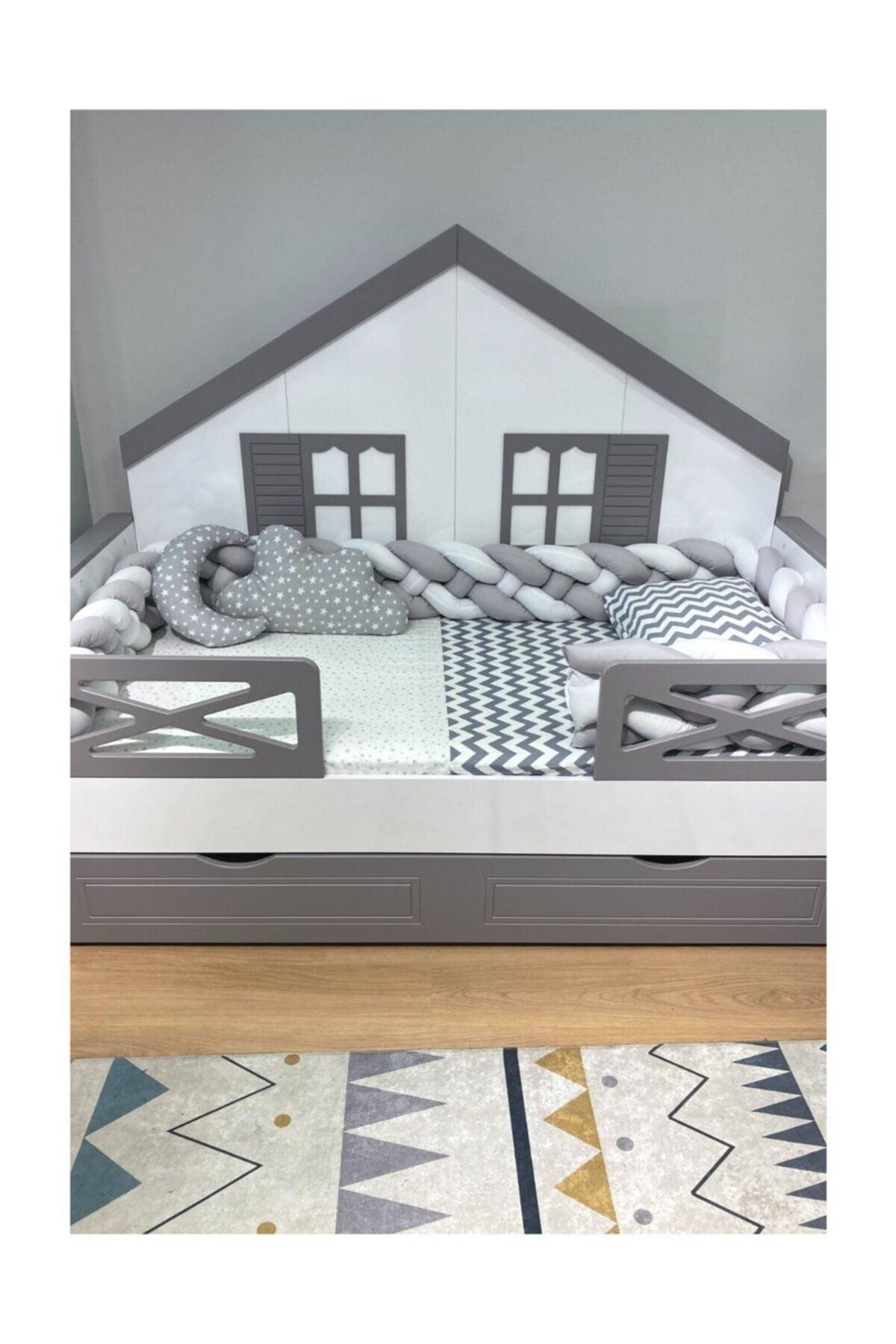 MARS 4 Parçalı Örgülü Montessori Bebek Karyolası 90x190 Gri ZIGZAG