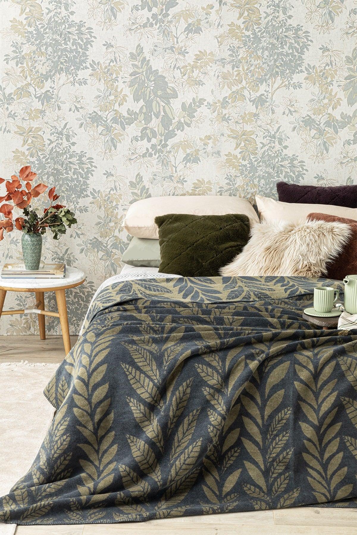 Sonbahar Ivy baskılı süper yumuşak çift battaniye 200x220 cm antrasit