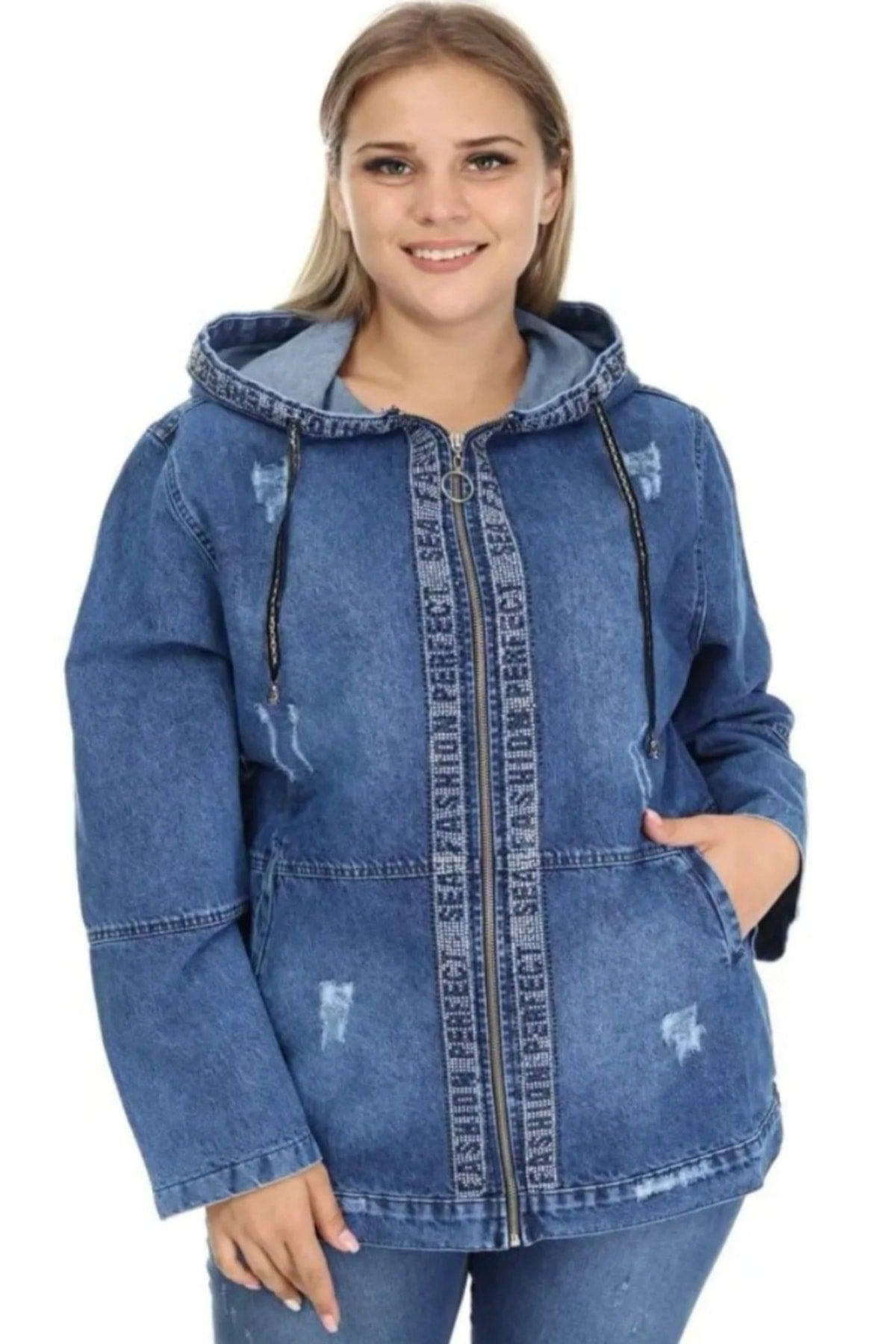 A86 Plus Size Hooded Denim Jacket With Pocket - Swordslife