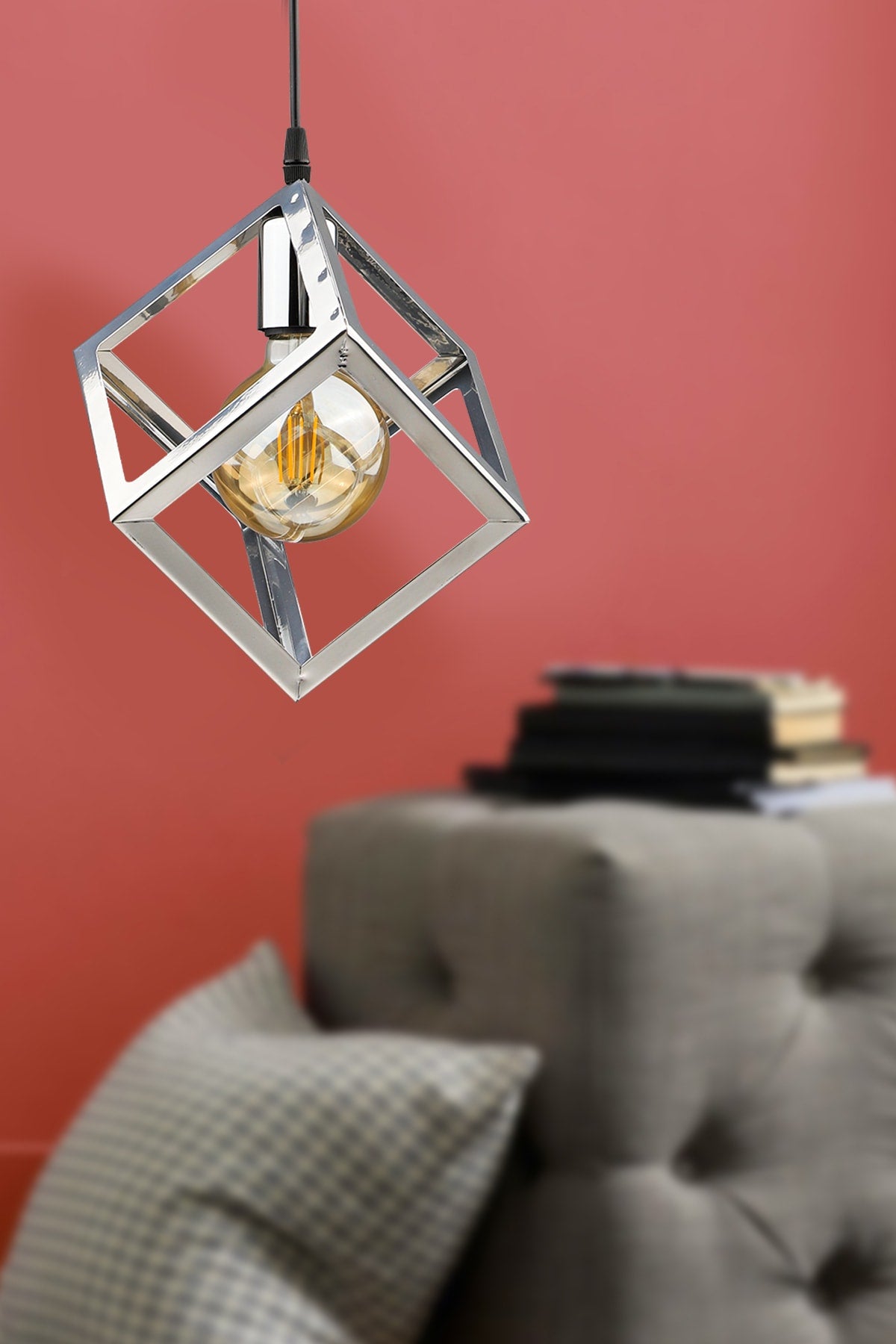 Cube Single Chandelier Chrome