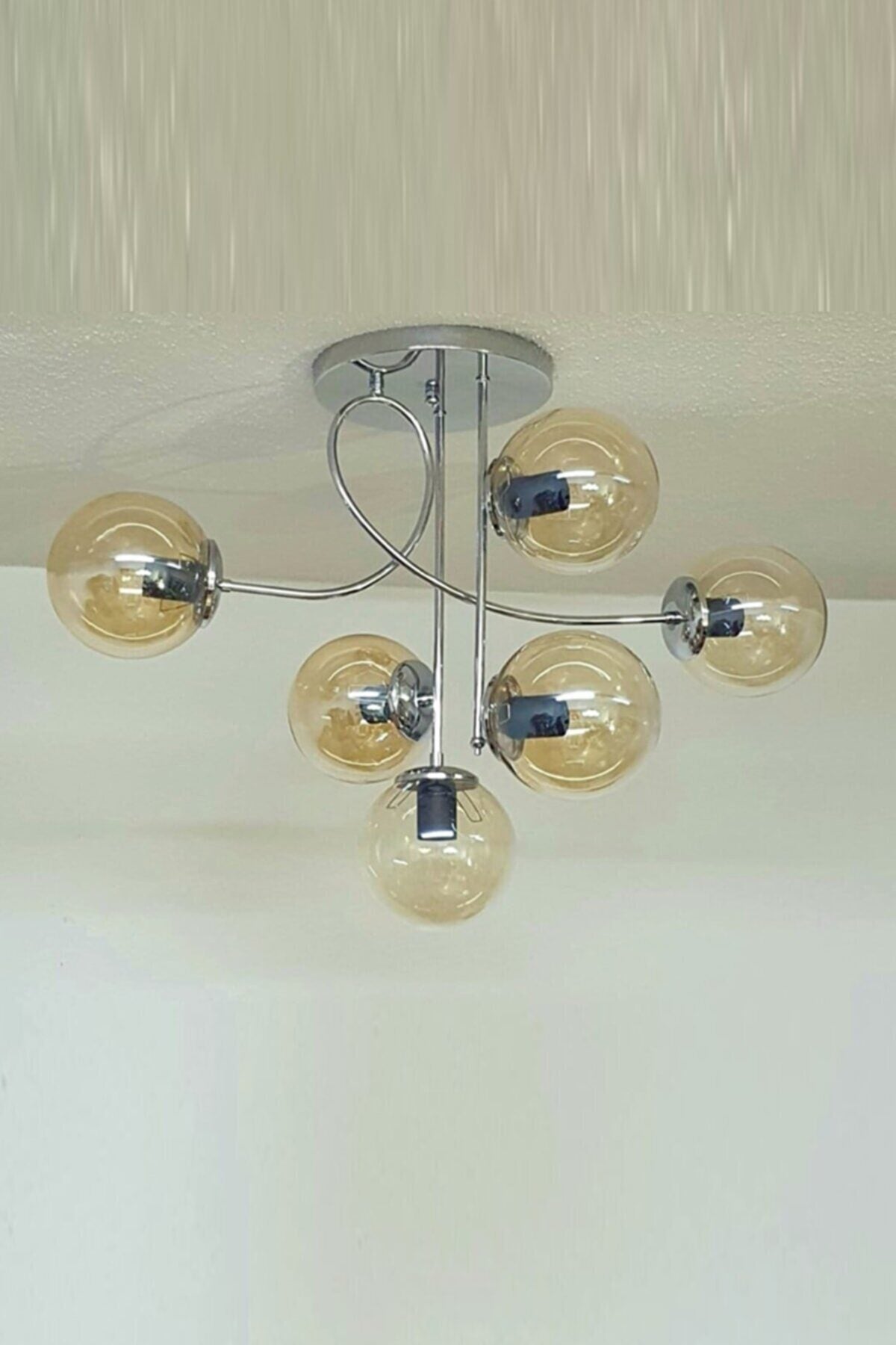 6xe 27 sensors. suitable for led and rustic bulb use. chrome oven paint body. honey color glop glass (diater 16 cm) diameter 80 cm, height 55 cm. 100% domestic production. Create a party-ready atmosphere with this colorful LED lighting. Easy to install and perfect for events or home decoration.