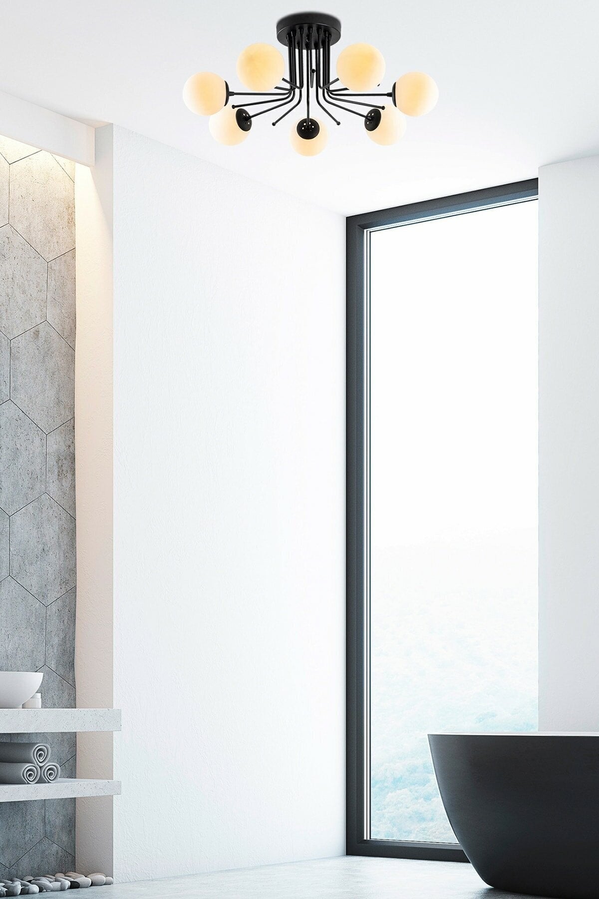 Luxury Design Modern Sports Trend Model Glop Glass Black Seven-Piece Chandelier