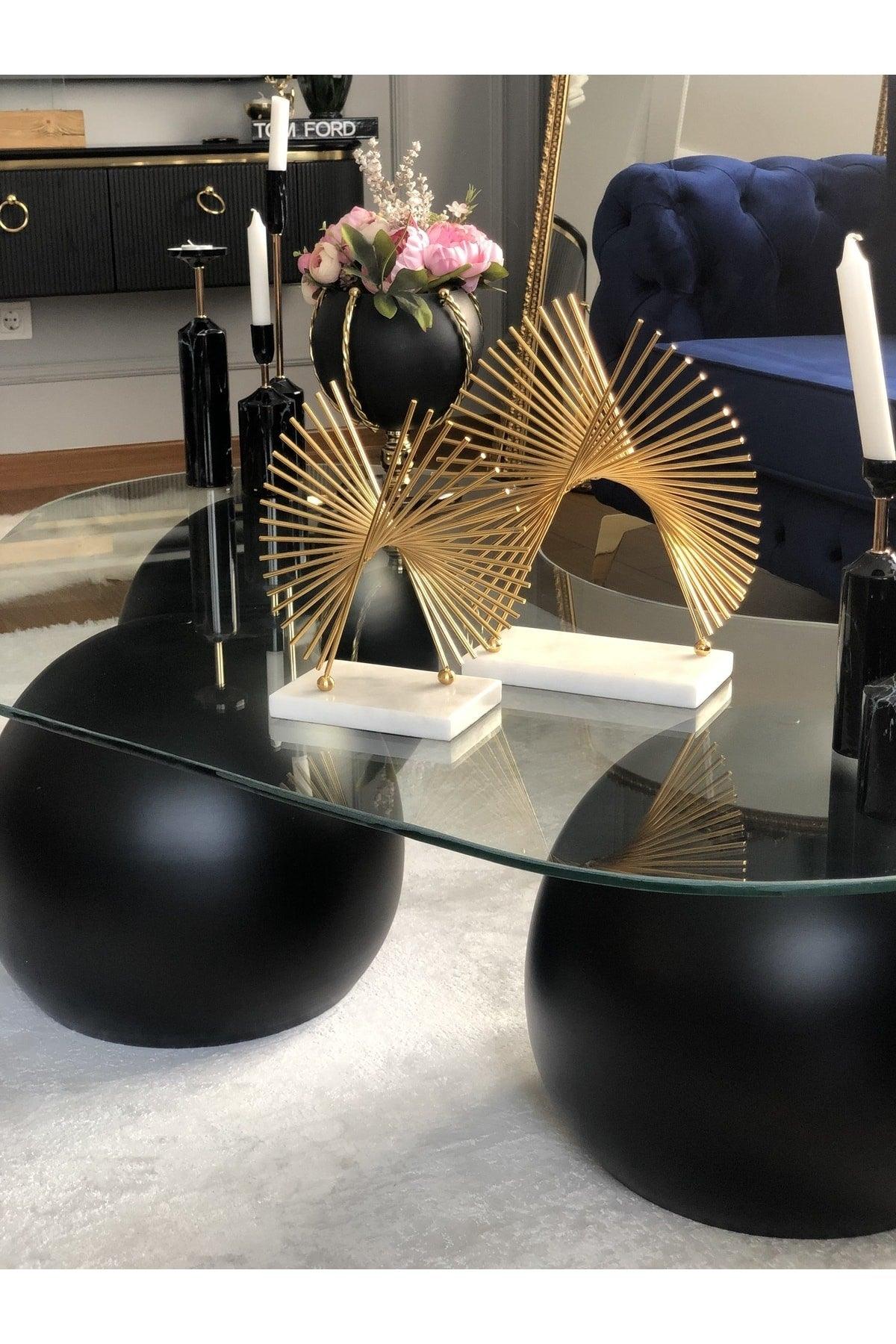 Mat Siyah Seramik Bohem Seti - 2 Yüzük vazo 1 at biblo 1 büyük sunum gökkuşağı tepsisi 2 gül mum tutucular