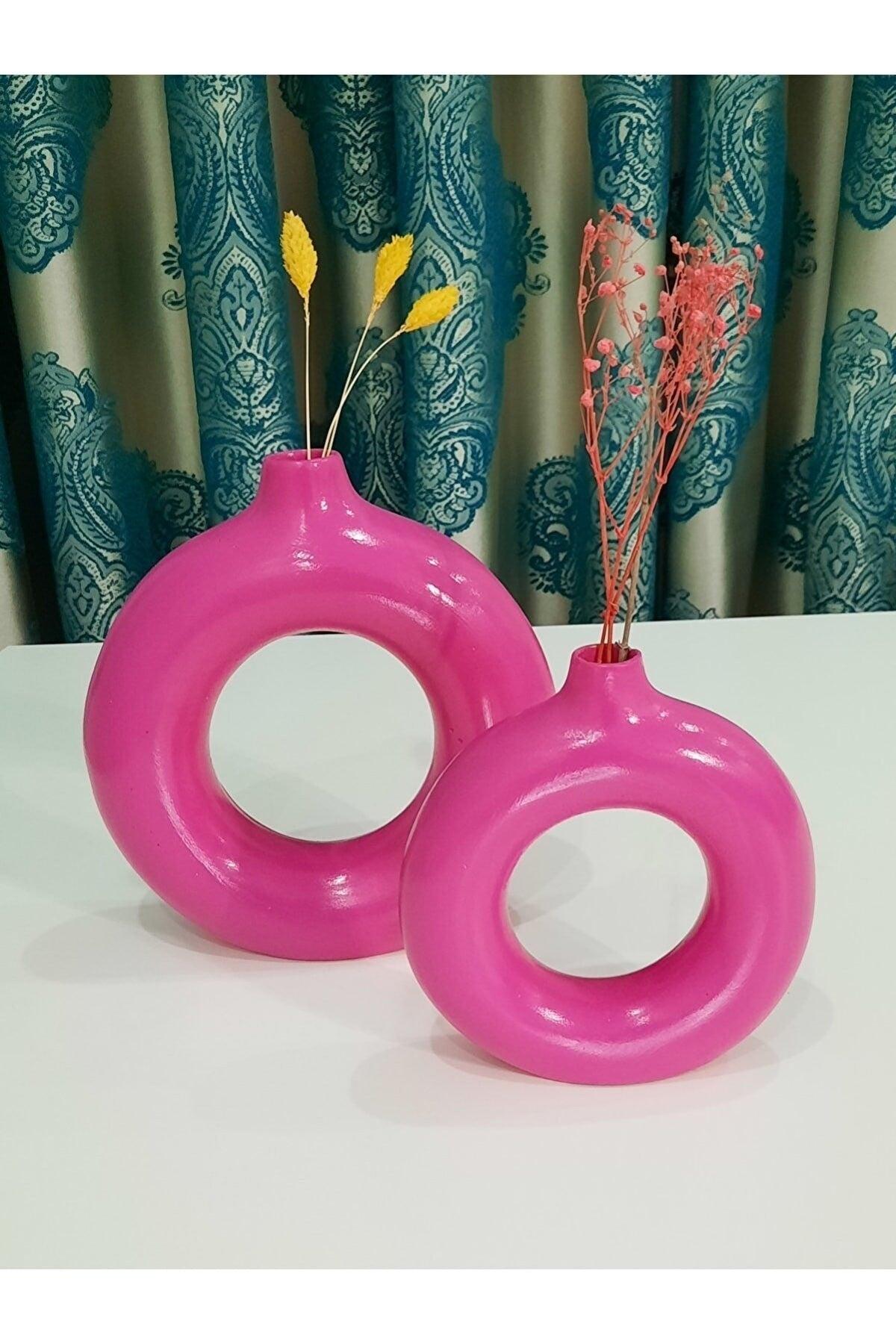 Dekoratif 2-set saksı, metal bacaklı vazo
