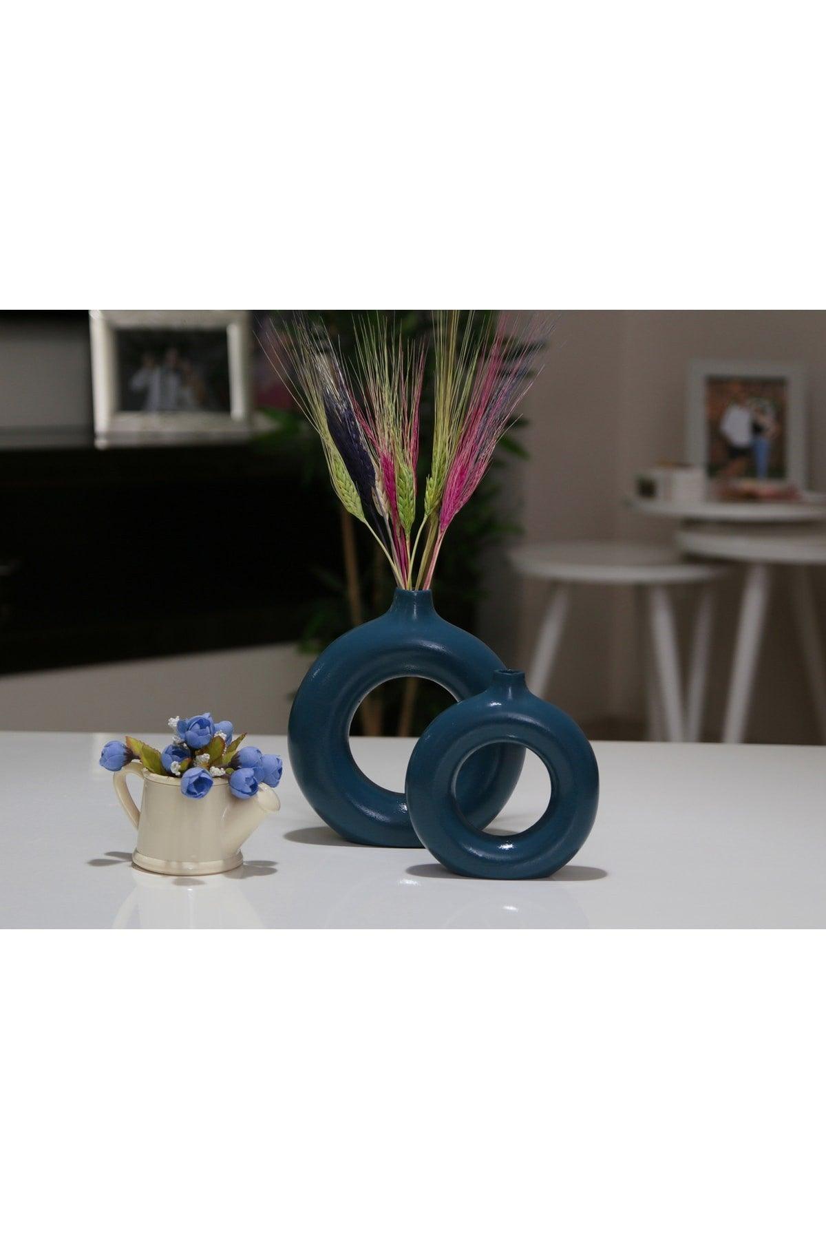 Aurora porselen vazo 10x10x15 cm mavi-beyaz