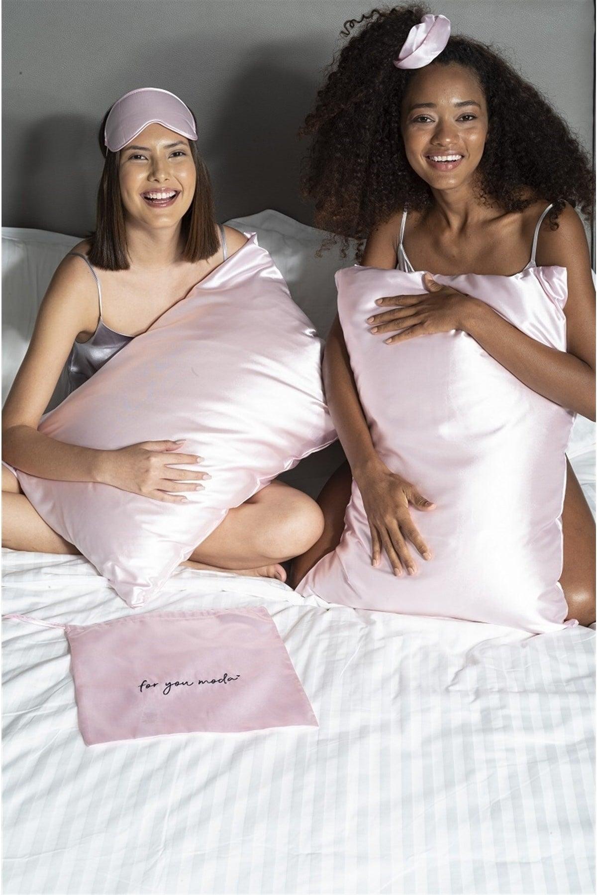 % 100 ipek saten 50x70 cm 2 yastık kılıfı ve 2 toka pembe renk