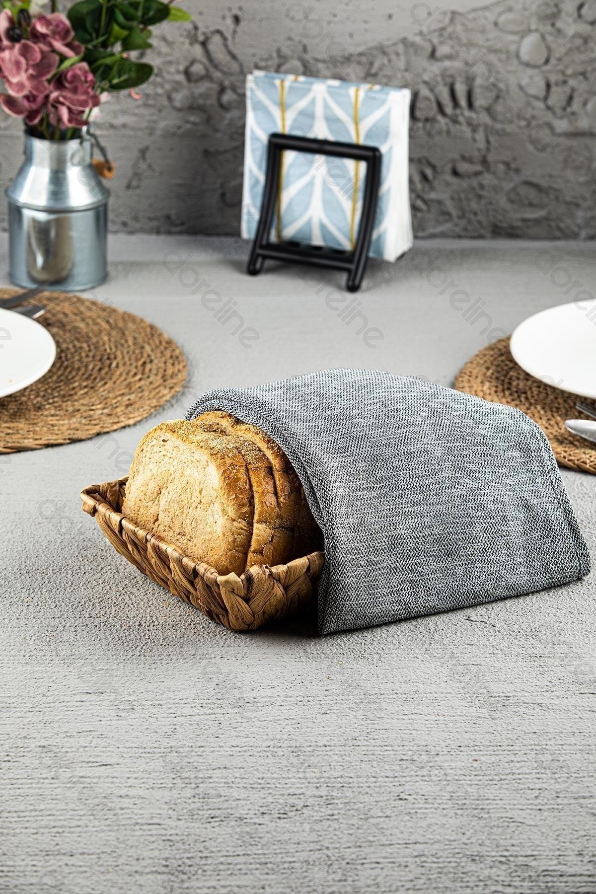 Dikdörtgen kalın örgü örgü örgü örgü dekoratif ekmek sepeti, meyveli, havlu