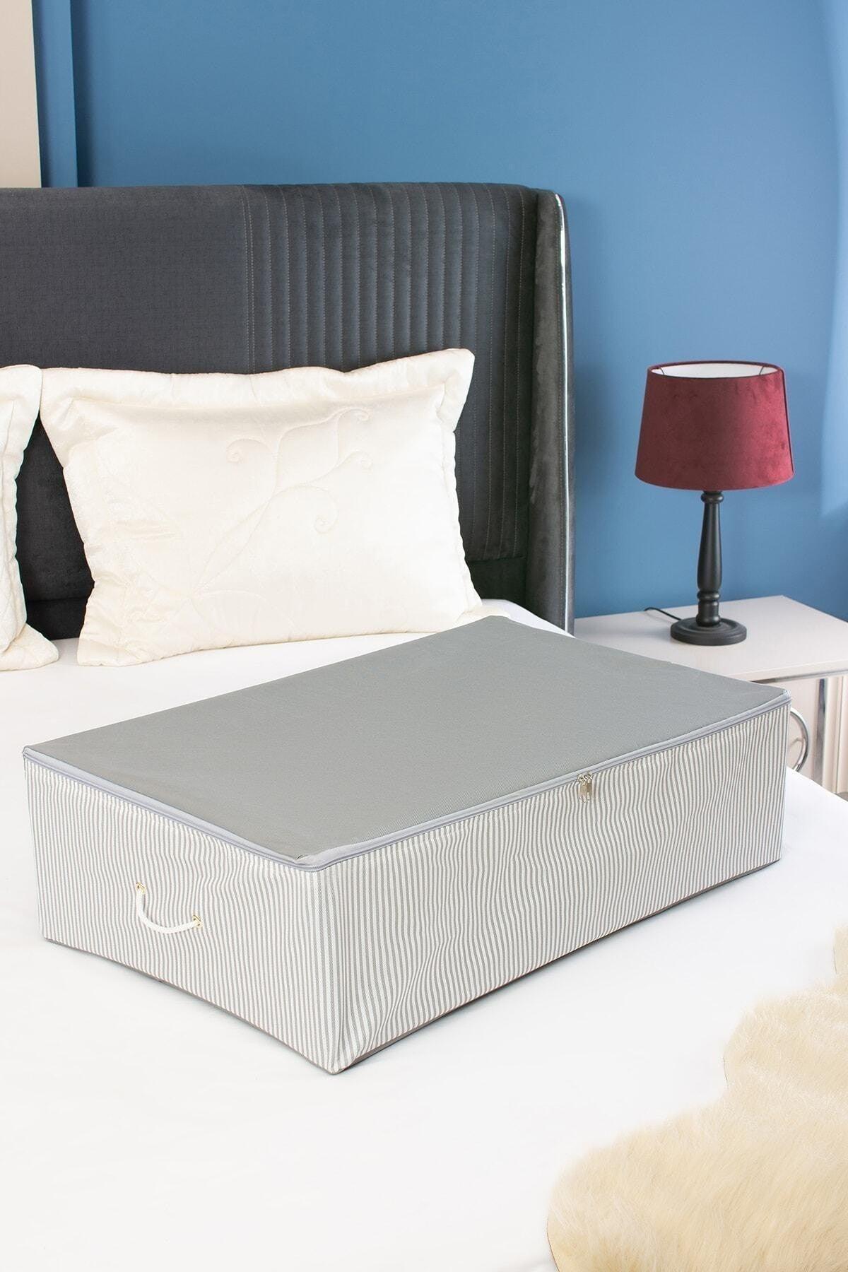 Taban altında büyük boy bej çizgili depolama torbası 62 x 46 x 22 cm
