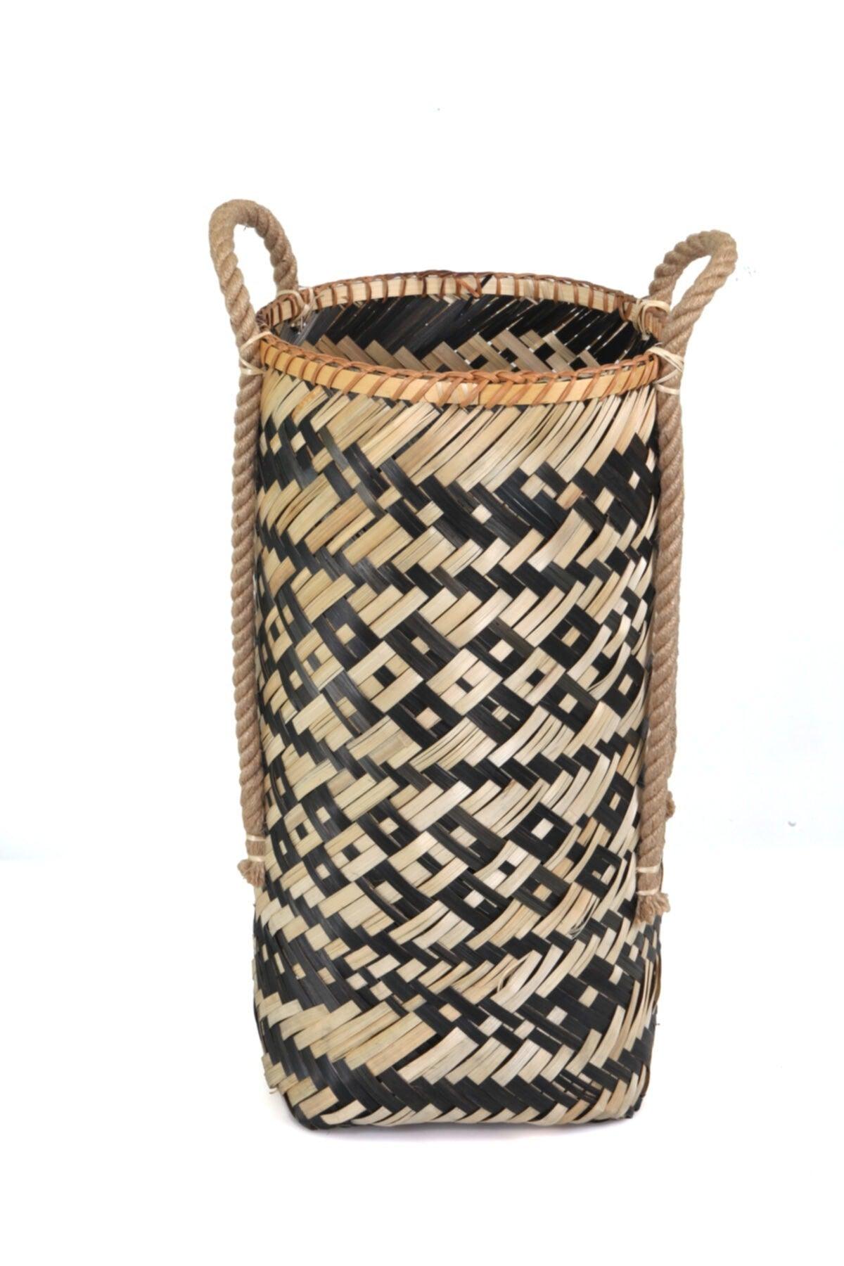 Siyah düz kapak çok amaçlı sepet ipi ipi