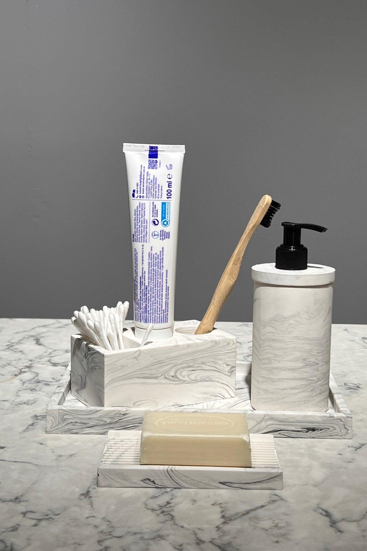 Gold-Dore Banyo Seti ve Sıvı Sabun Dispenser, Tepsi, Diş Fırçası Tutucu, Pamuk Tutucu, Kulak Çubuğu Tutucu