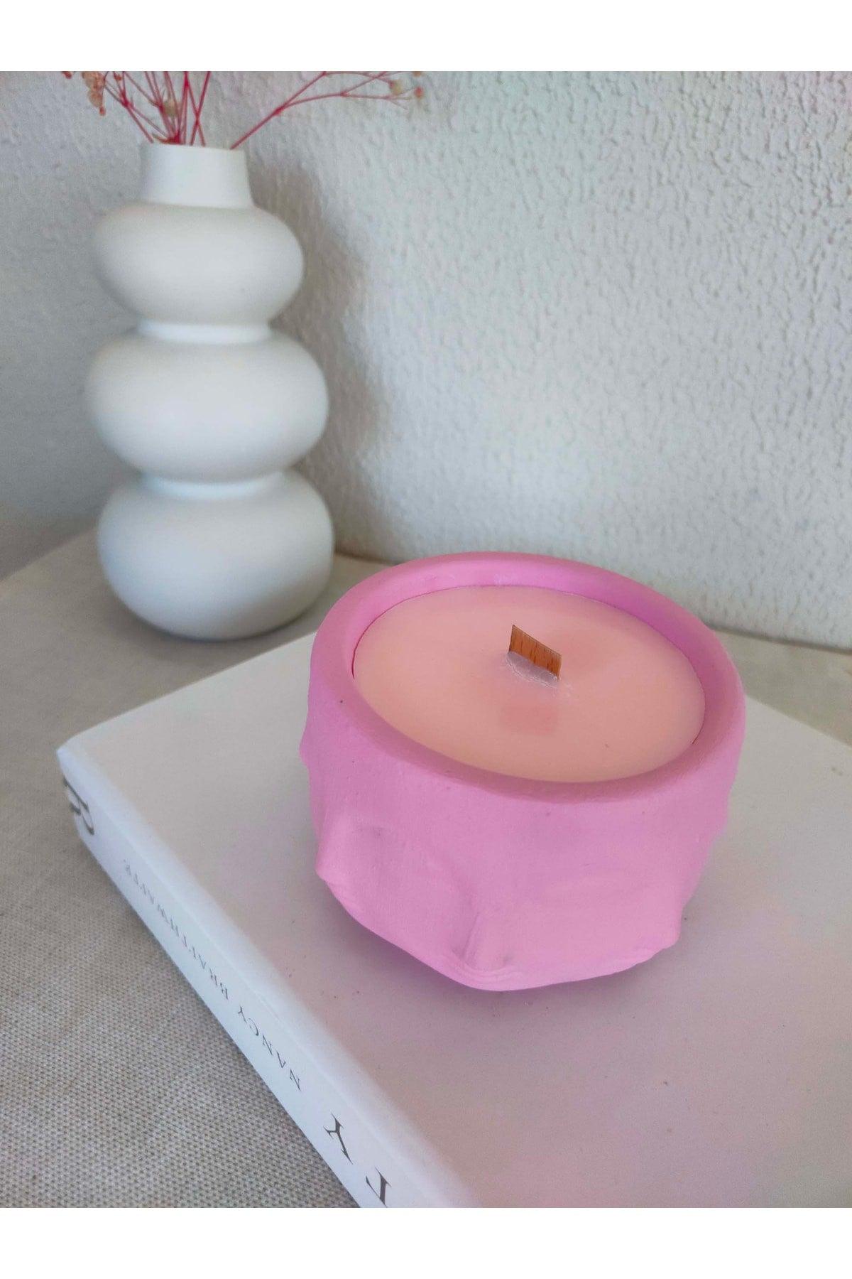 Pastel dekor% 100 soya balmumu elma kokulu el yapımı doğal aromaterapi beton mum