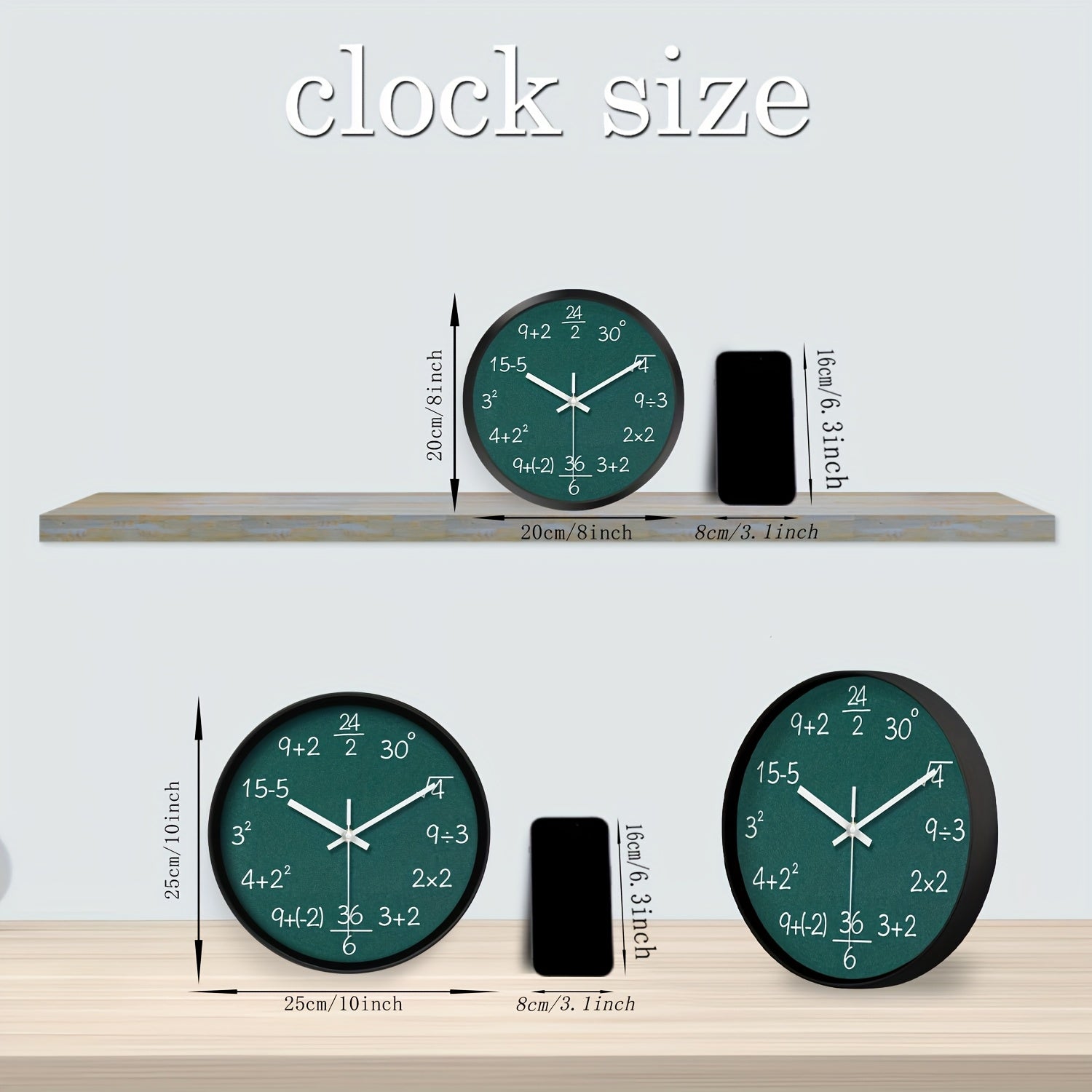 8-Inch Silent Quartz Wall Clock – Stylish Green Digital Display with Math Formulas, Quiet Sweep Movement, Battery Operated (AA Battery Not Included), Perfect for Home or Office Decor, Clock Wall Decor