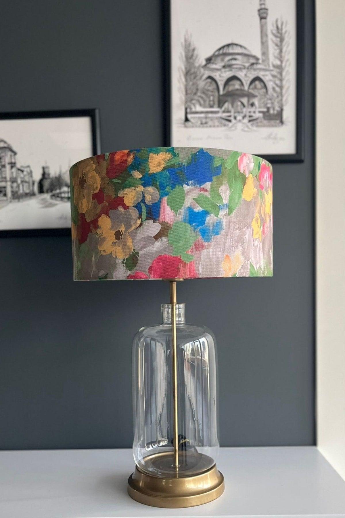 Lionetta Mat Altın Metal Cam abajur, Masa Lambası