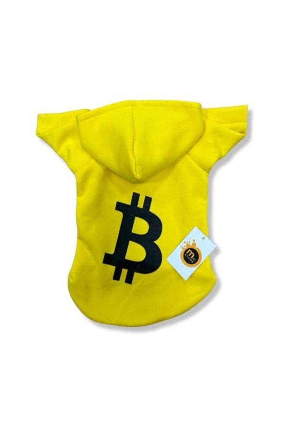 Sarı baskılı kapüşonlu kedi ve köpek kıyafeti ter