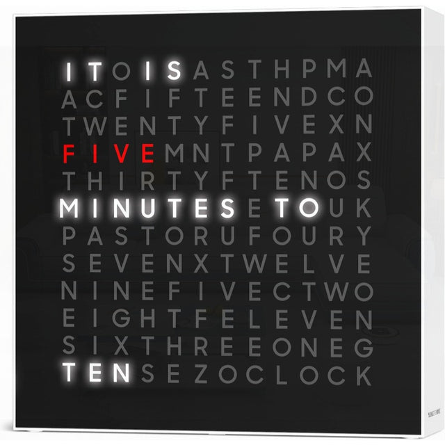 ® LED Word Clock Pro with Dimmable Light 9.45" Modern Design and Red 5Minute Alerts Electronic Accent Wall and Desk Clock Contemporary Home and Office Decor Housewarming Gift is backordered and will ship as soon as it is back in stock.