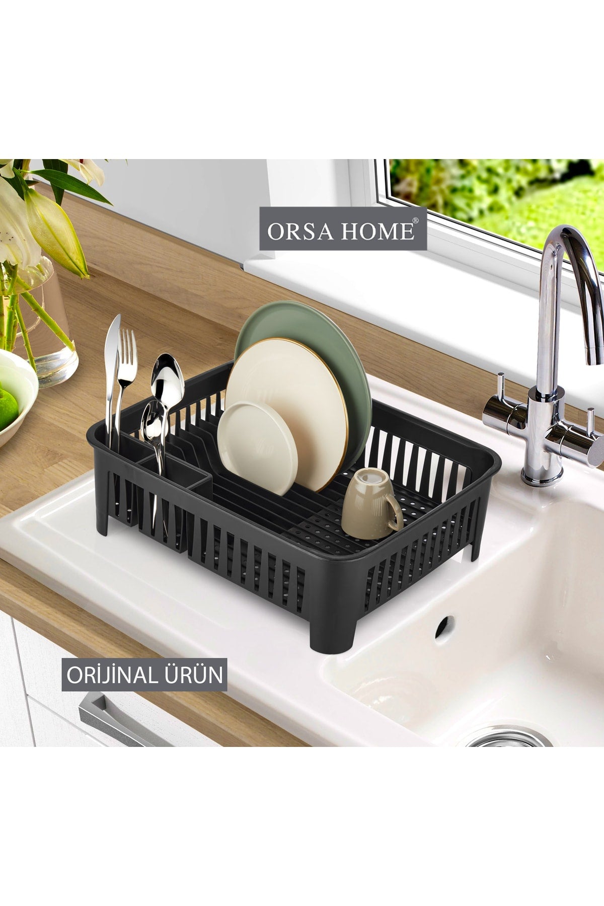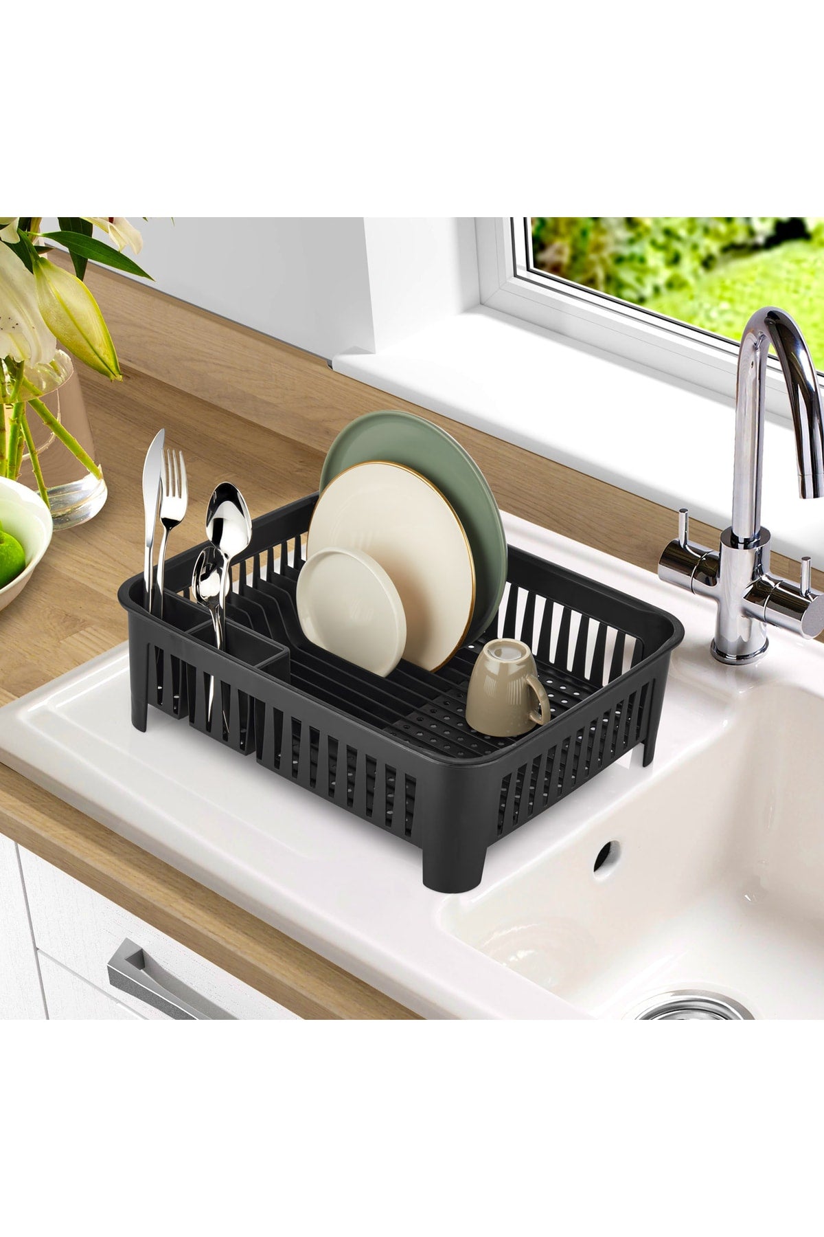 092 Matte Black Countertop Dish Rack With Cutlery Compartment, Smart Plate Rack