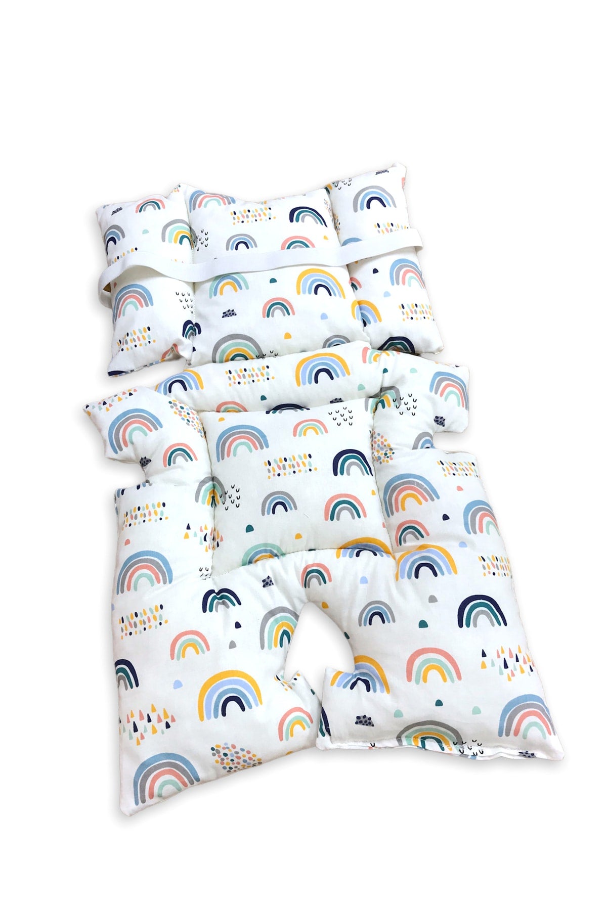 100% Cotton Baby Stroller And Baby Carriage Cushion With Lumbar Support Blue Rainbow