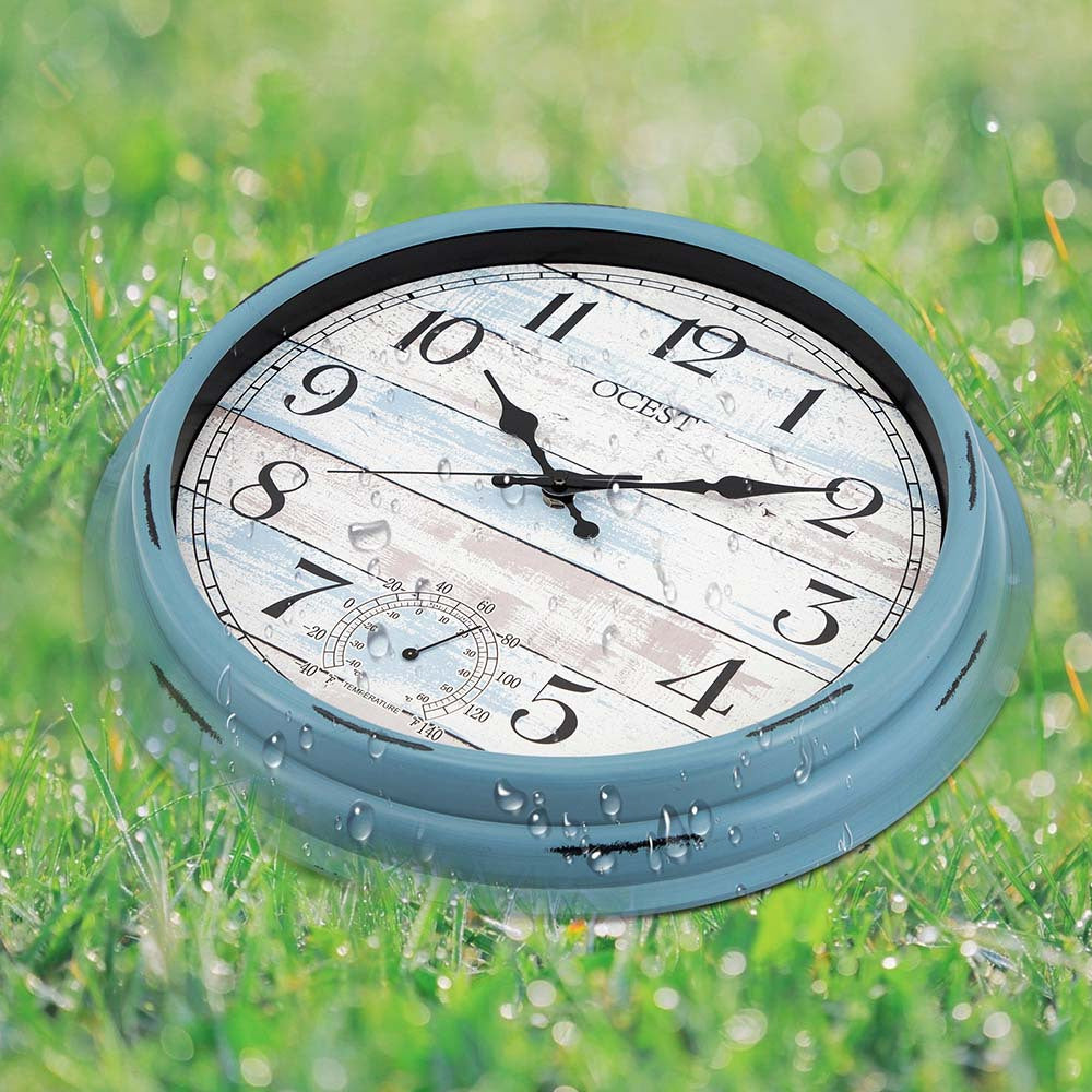 16 Inch Large Outdoor Clock Retro Clock Non-Ticking Clock with Thermometer Battery Operated Wall Clock for Patio, Garden, Pool is backordered and will ship as soon as it is back in stock.