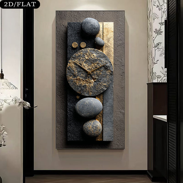 1pc large frameless modern wall clock with natural stone texture golden accent hands dark grey beige like canvas art print for bedroom home office minimalist contemporary 80x160cm 31 5 x62 9 2d flat