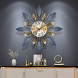 21.6 Inch Golden Blue Metal Leaf Design Wall Clock, Silent Non-1Ticking, Elegant HomeDecor For Living Room, Bedroom Wall Clock