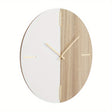24 brown wood round wall clock with marble side battery powered silent quartz movement modern for living room bedroom kitchen decor