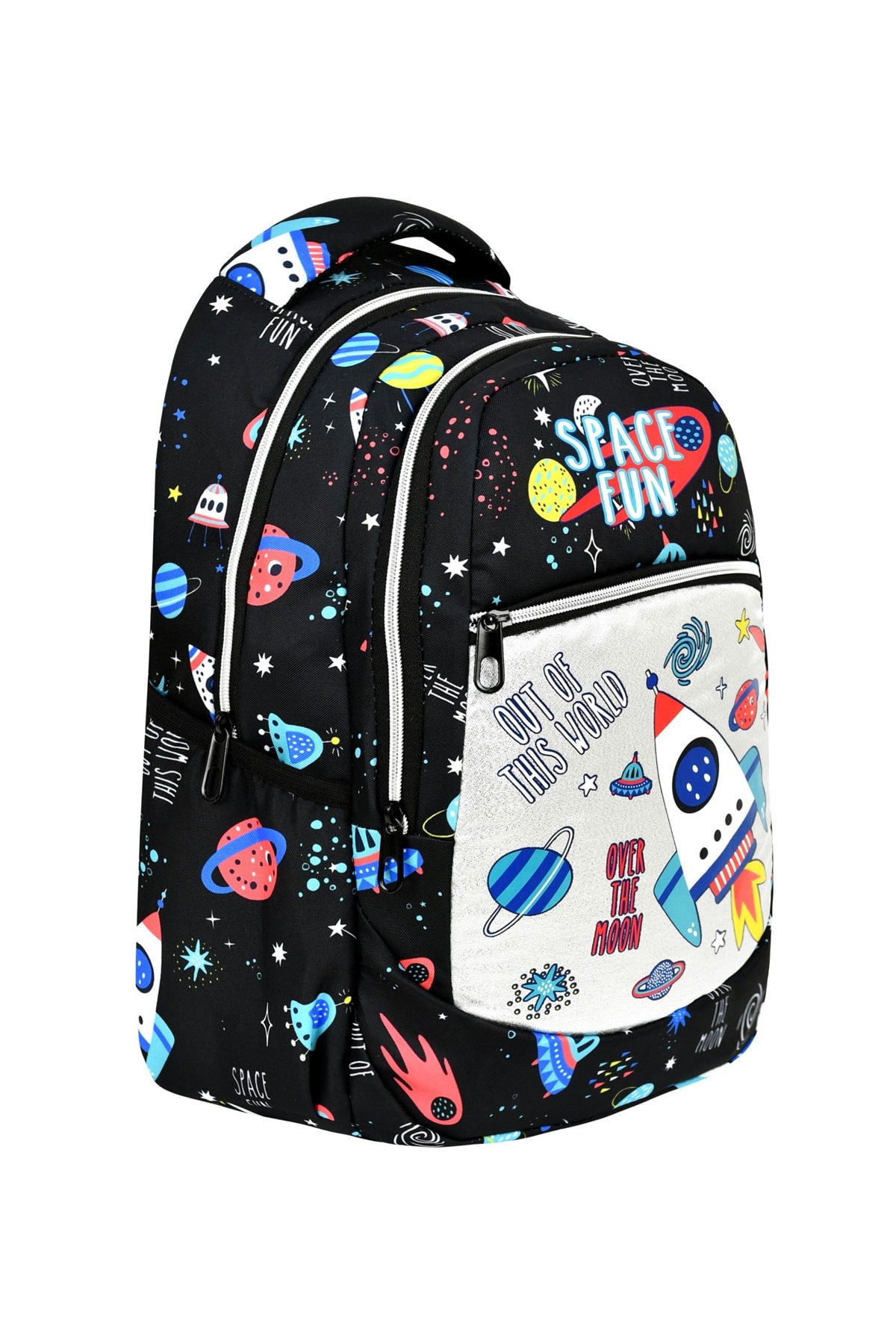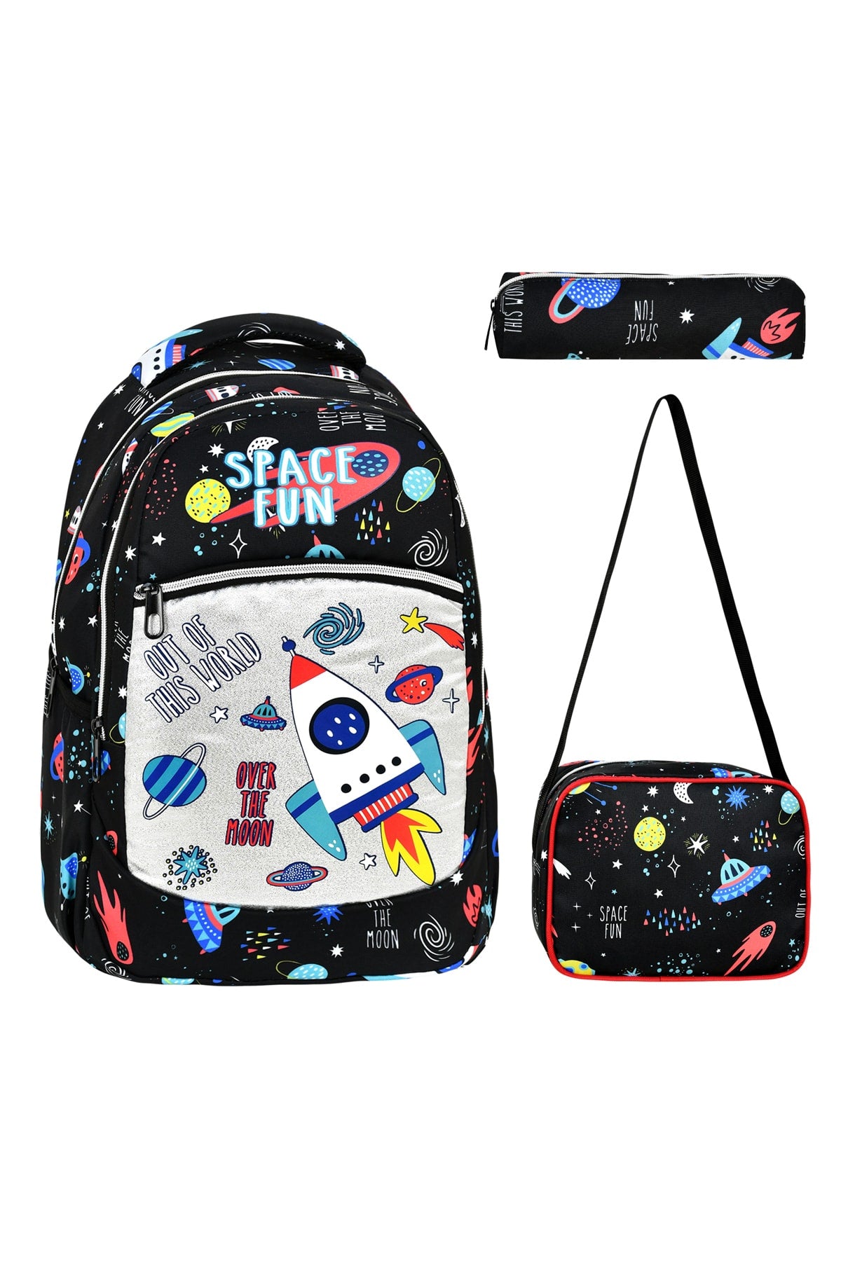 3-Pack Elementary School Space Patterned, Waterproof School Bag With Food And Pencil Holder For Boys