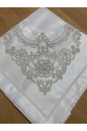 3D Fransız Guipure Dantel İnci İşlemeli Çek Krem Saten Lüks Paket