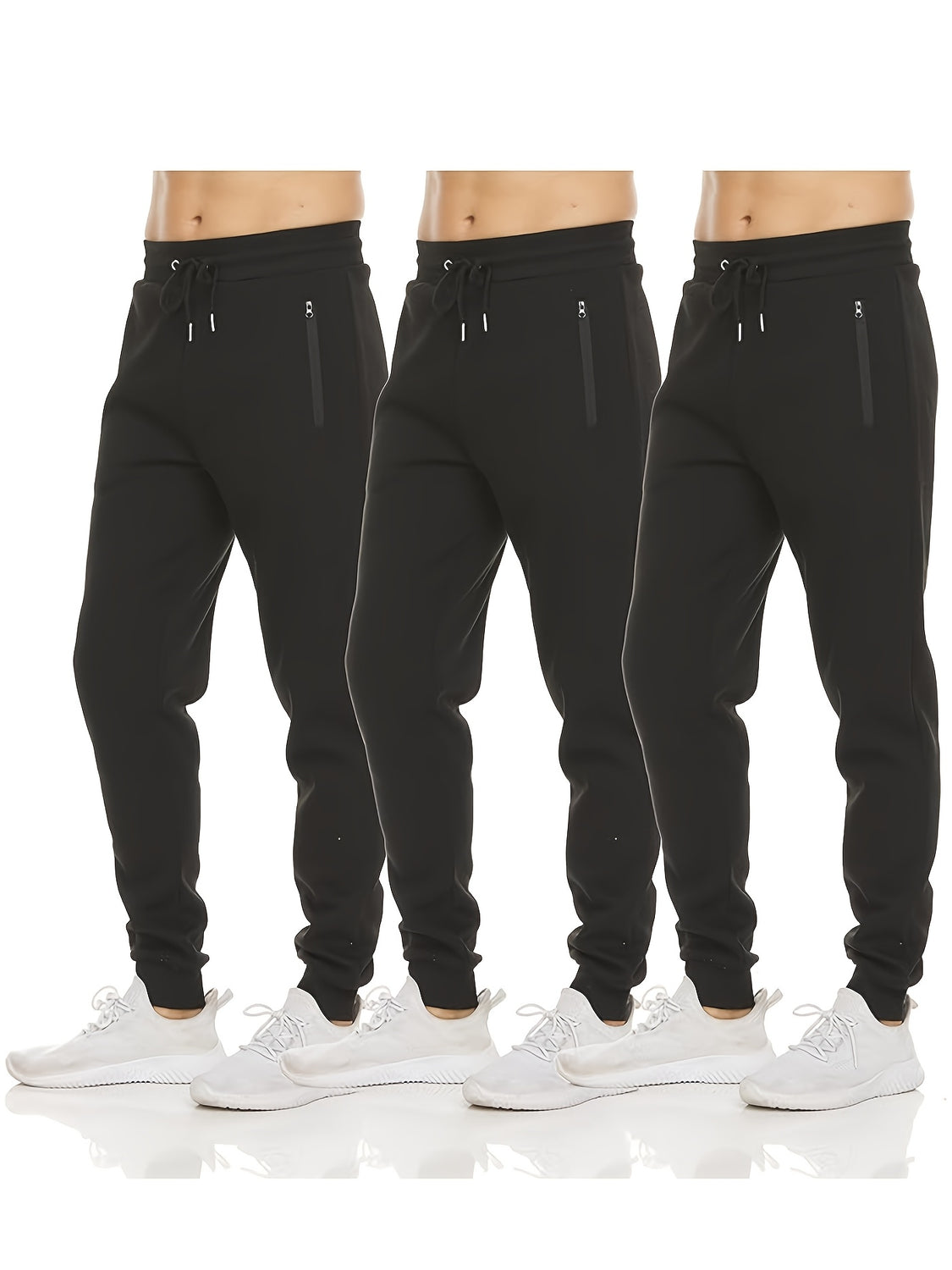 3pcs Mens Fleece Sweatpants - Casual, Sporty Joggers for Men, Athletic Pants with Zipper Pocket, S-3XL