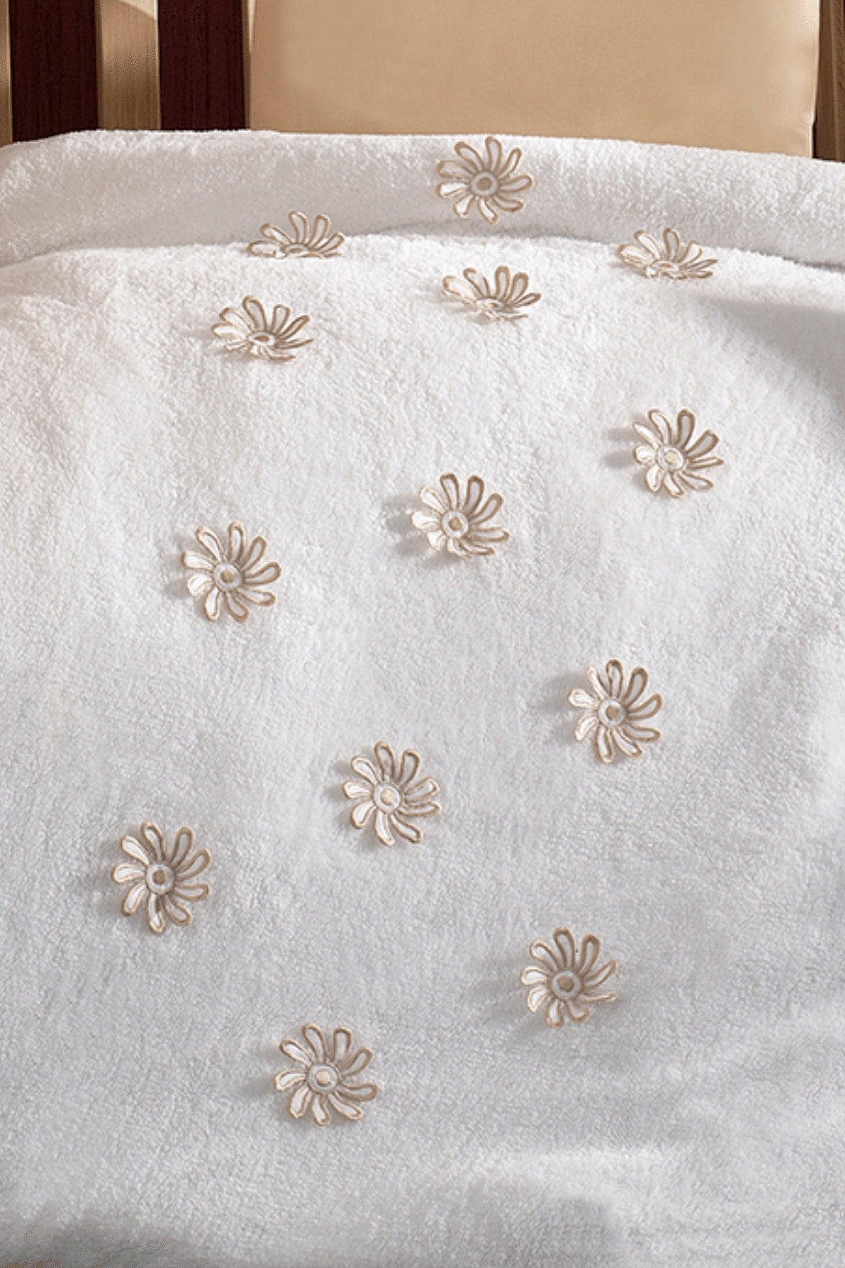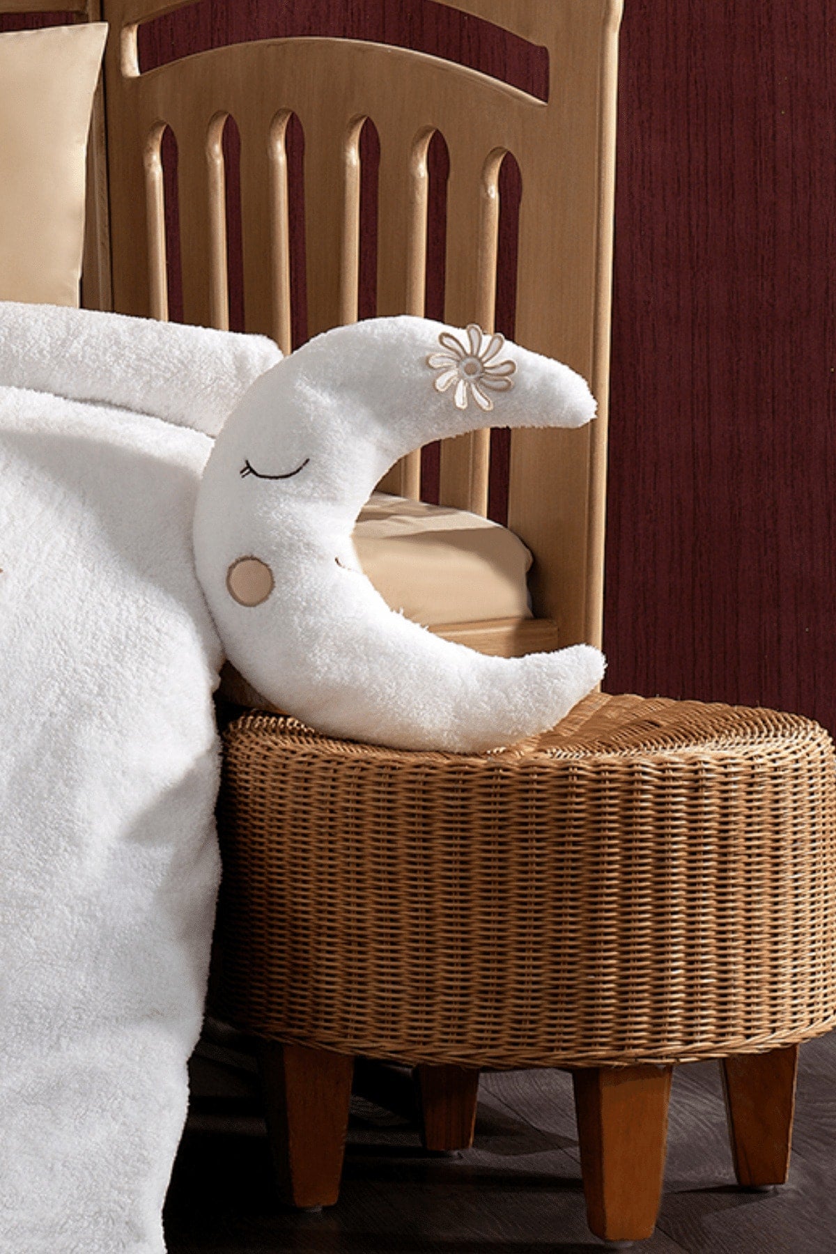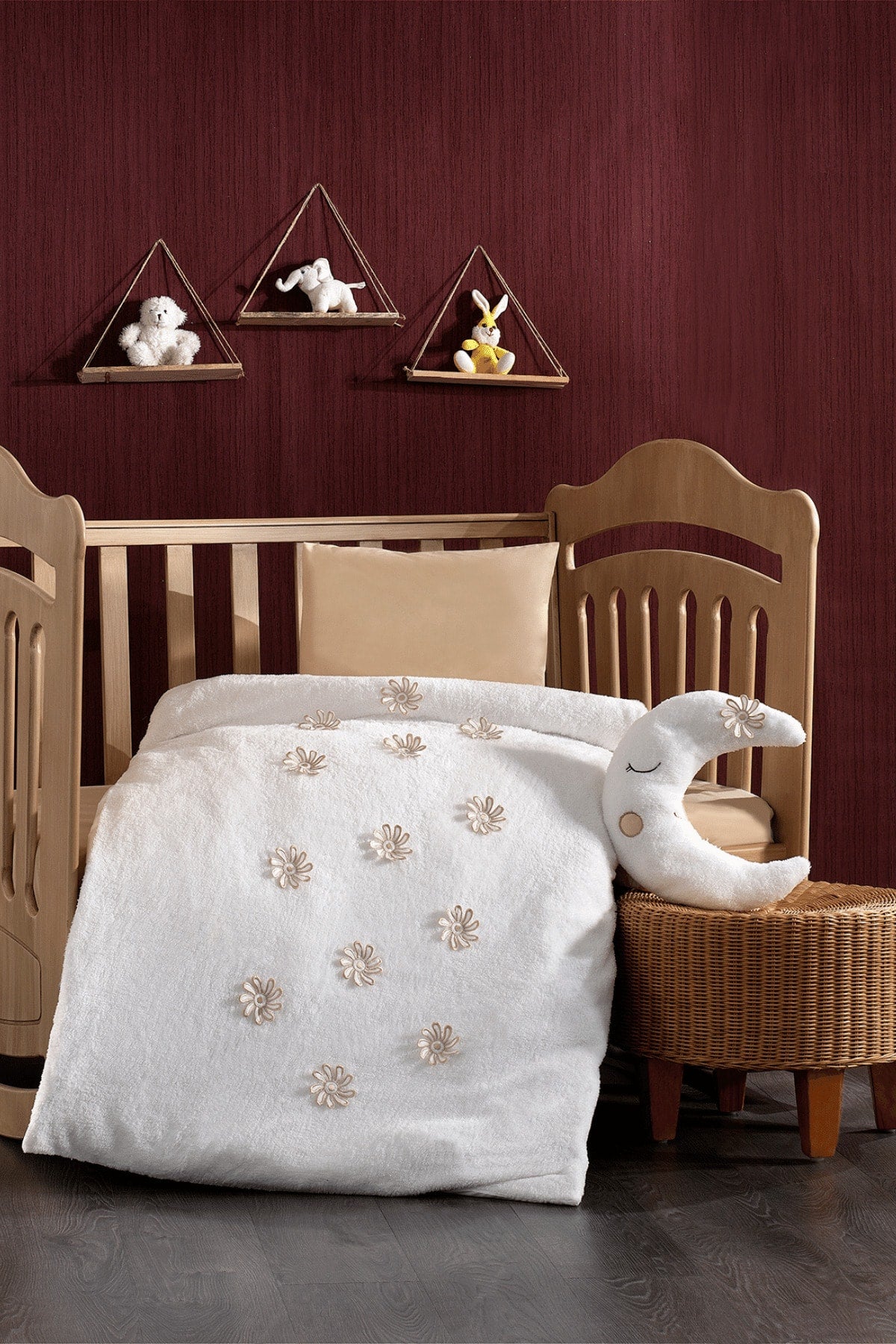4 Pieces 100% Cotton 3D Floral Pattern And Moon Pillow Beige Baby Duvet Cover Set