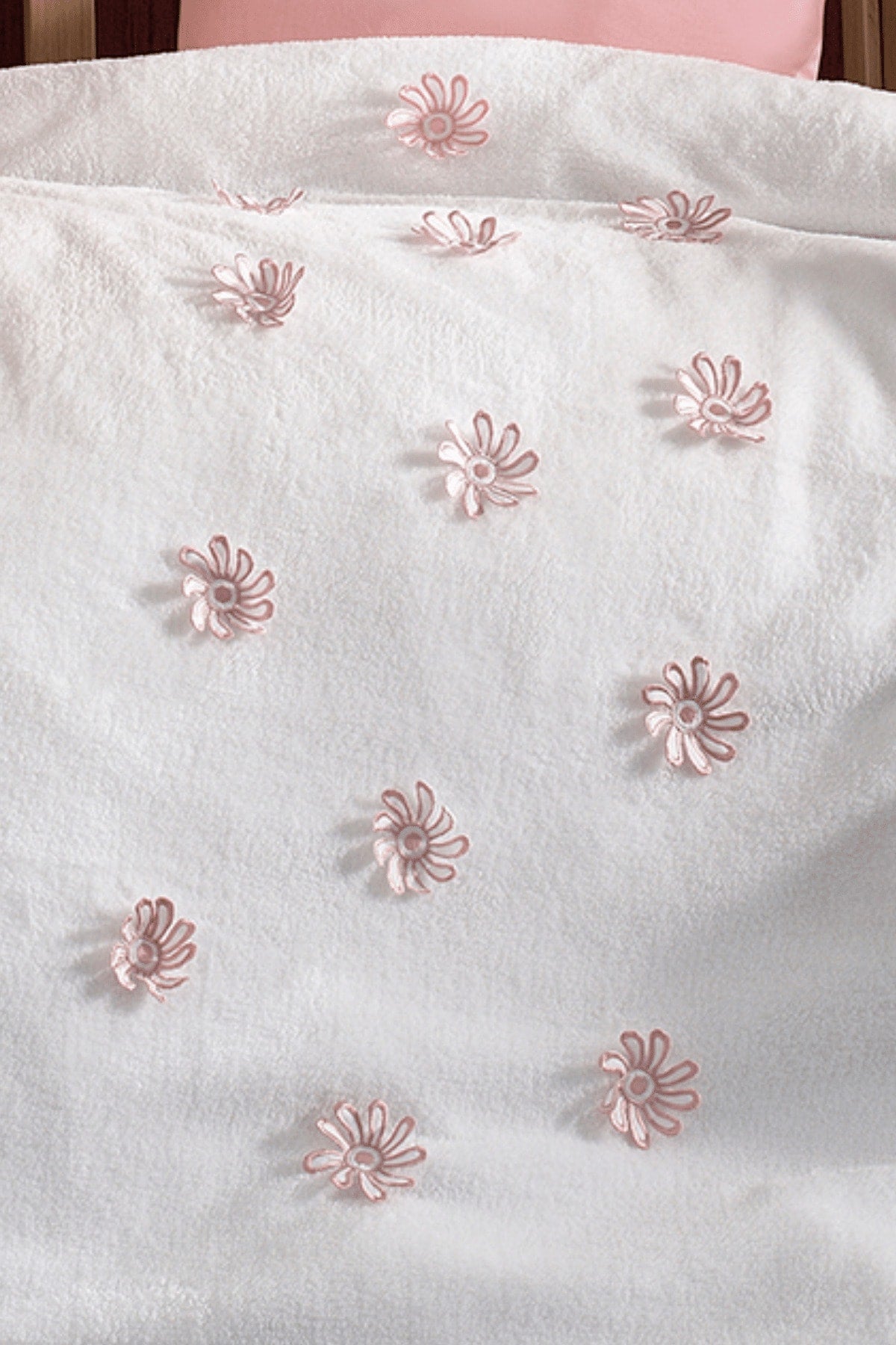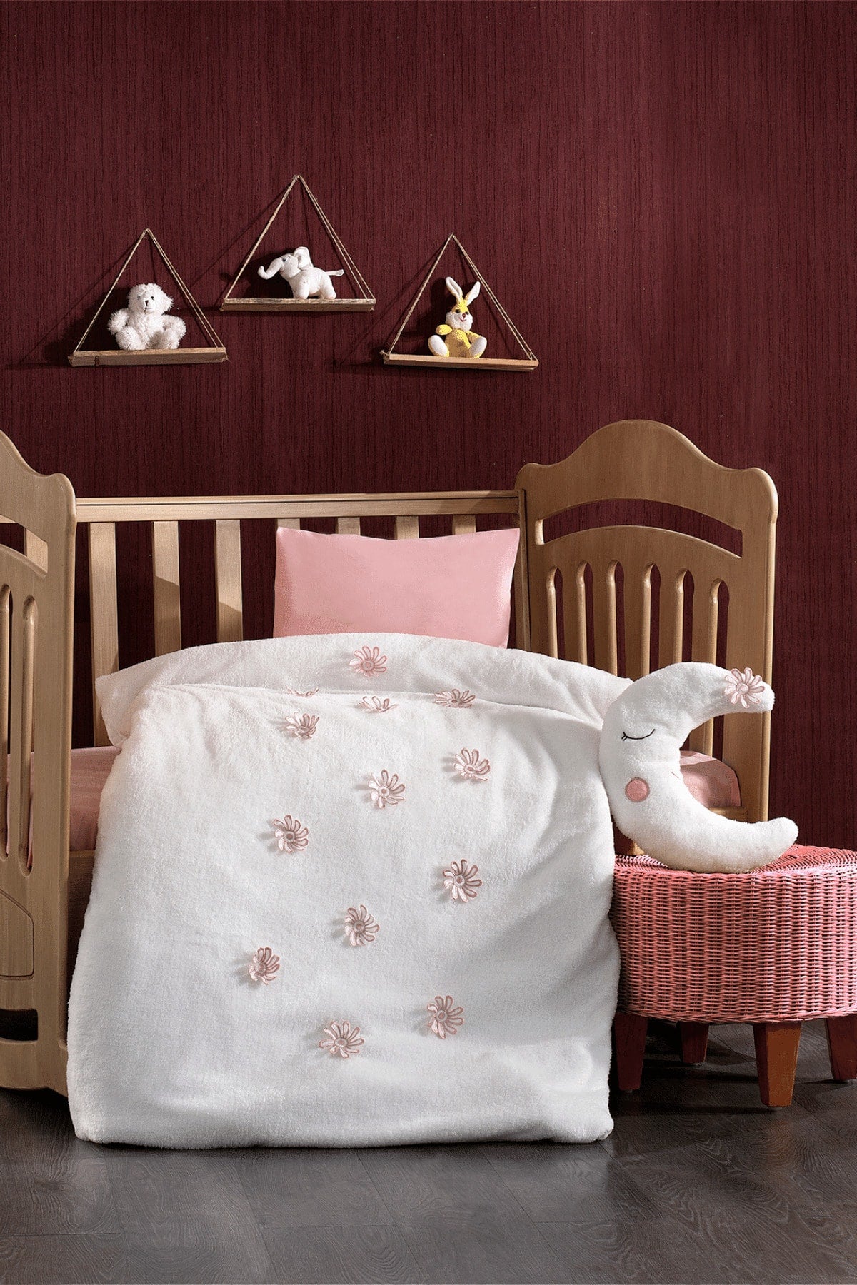 4 Pieces 100% Cotton 3D Floral Pattern And Moon Pillow Pink Baby Duvet Cover Set