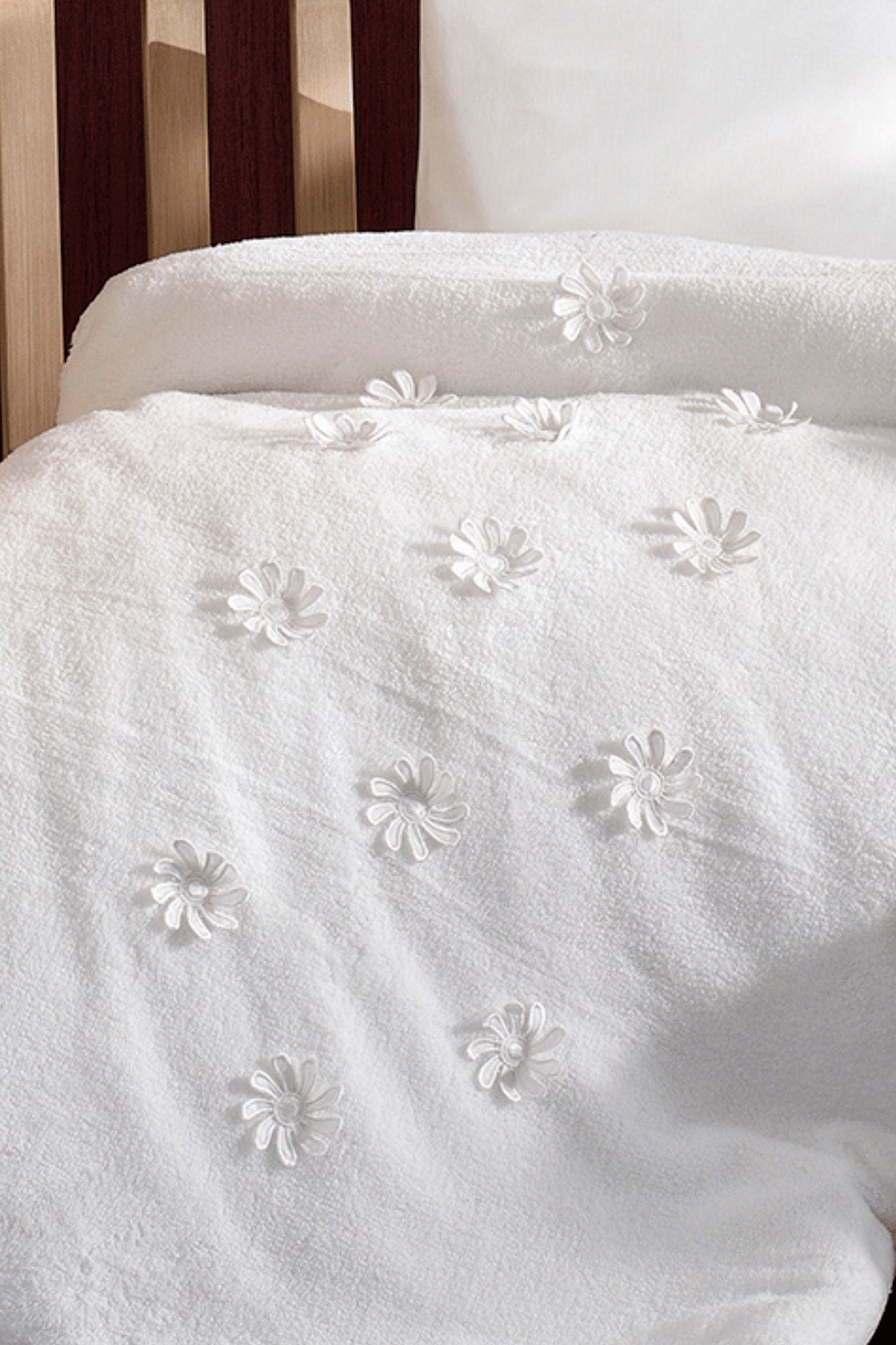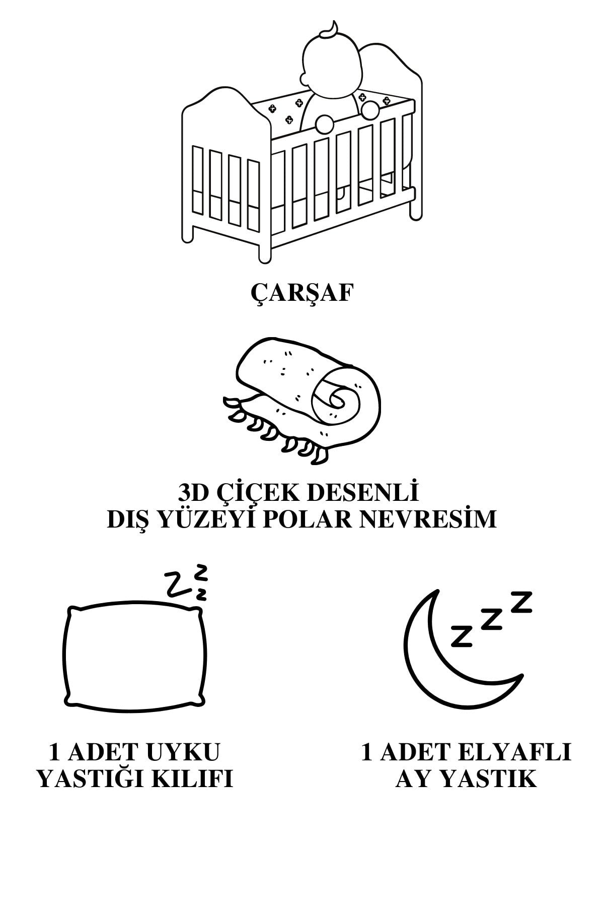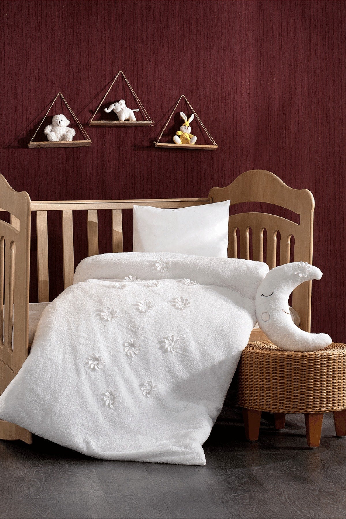 4 Pieces 100% Cotton 3D Floral Pattern And Moon Pillow White Baby Duvet Cover Set