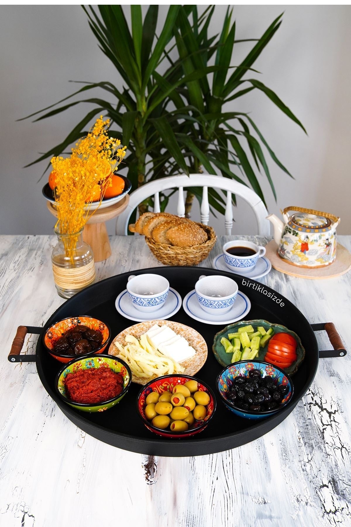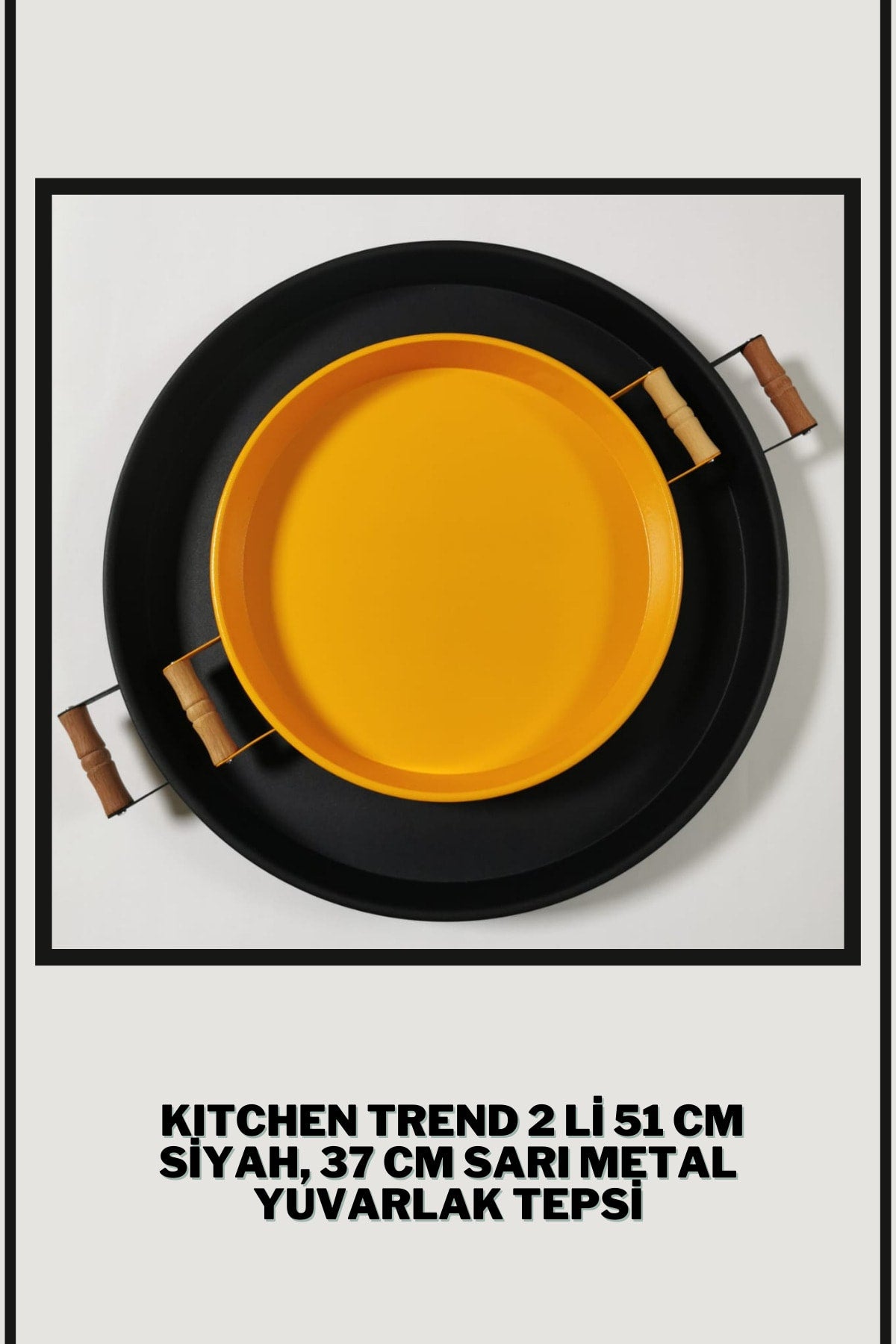 51 Cm Black 37 Cm Yellow 2 Liter Metal Round Tray Presentation Tray Tea Coffee Tray