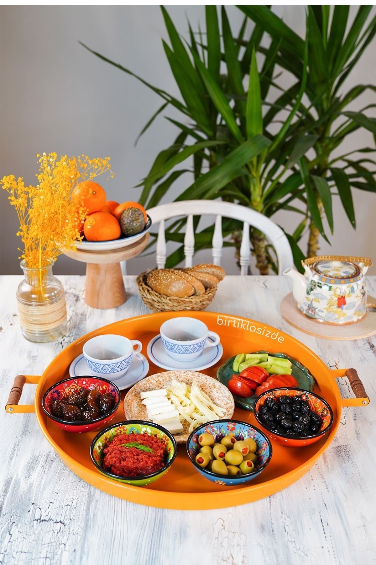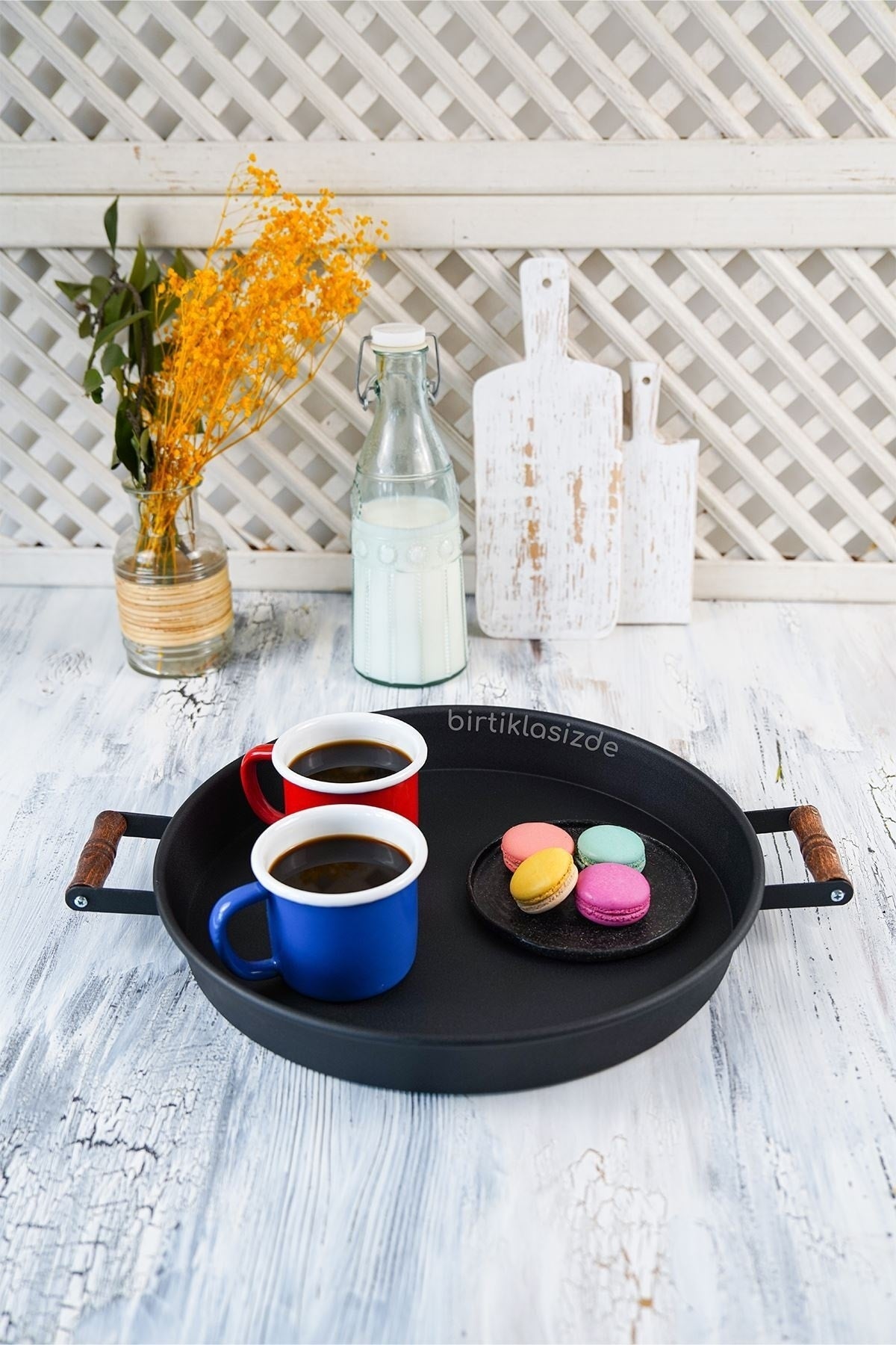 51 Cm Yellow 37 Cm Black 2 Liter Metal Round Tray Presentation Tray Tea Coffee Tray