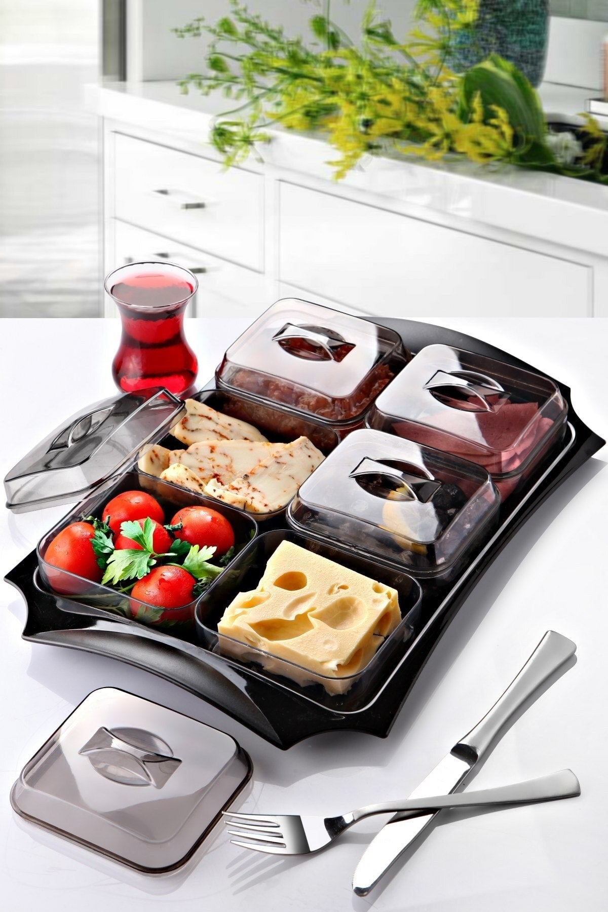 Kitchen life 6 compartment breakfast set with lid is suitable for serving purposes at breakfast and dinner tables. it is dishwasher safe. it has a stylish and useful design. since its top is transparent, you can see what is inside from the top. it has a stylish and useful design with its striped model. thanks to its transparent material the inside can be easily seen. it is made from mica material, a derived plastic. it does not contain bpa and does not contain substances harmful to health. product dimensions: 20 x 41 x 8 cm. consists of 13 pieces. 6 breakfast items, 6 lids, 1 trayreturn conditions: your products must be returned as they arrived, wrapped in paper, boxed and with the packaging intact. otherwise, the returns sent will not be accepted. Improved version for clearer understanding and better search visibility. Suitable for users seeking detailed and reliable product information.
