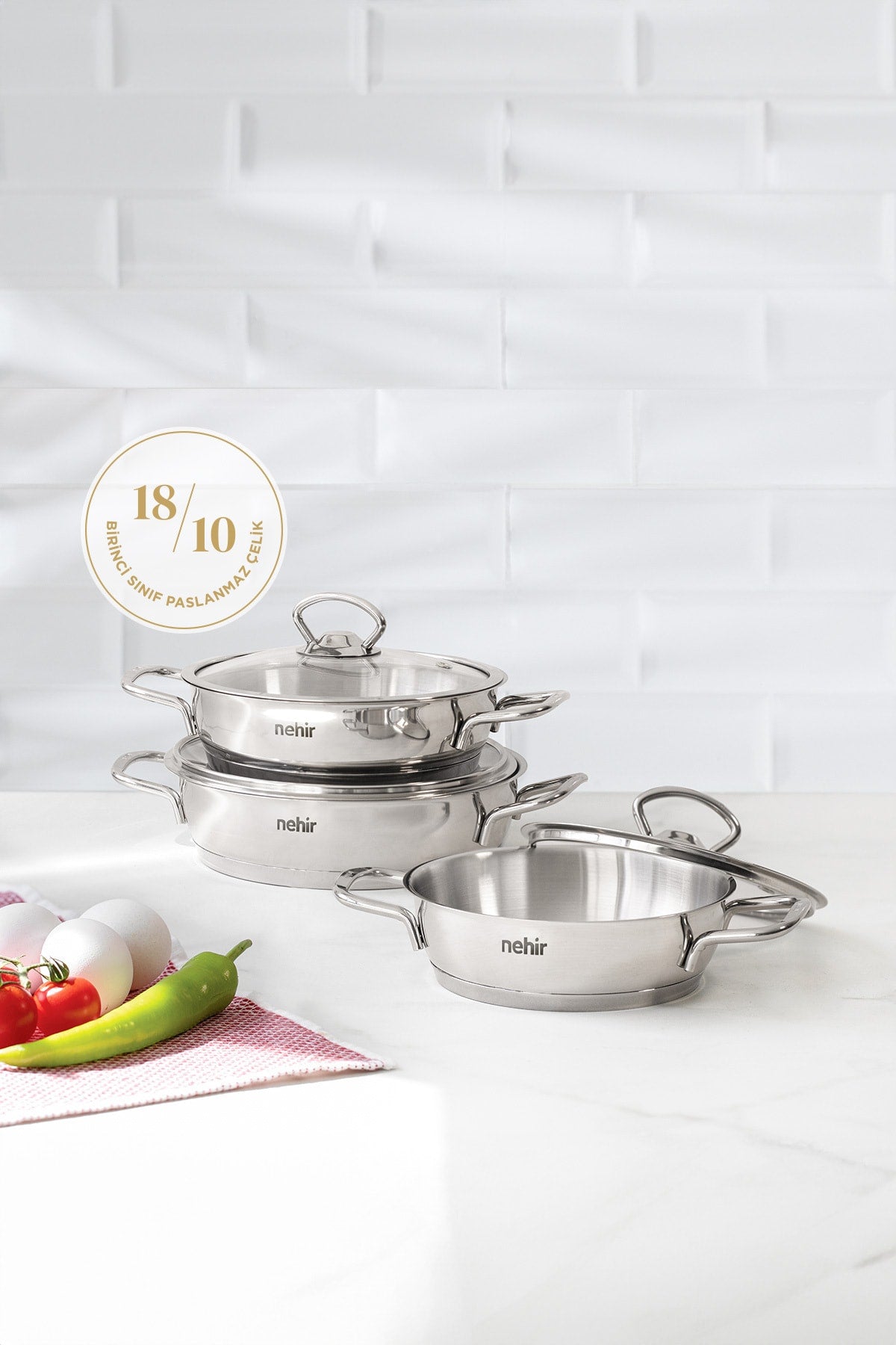6 Piece Silver Stainless Steel 3-Piece Pan Omelette Pot Set