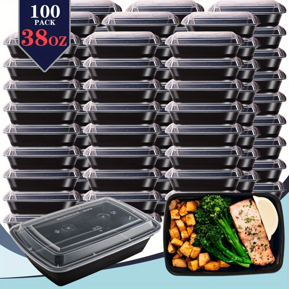 100pcs/ 200pcs Black Rectangular Meal Prep Containers 38oz Stackable And Leakproof Food Storage Container Set Disposale Bento Box Ideal for Takeout And Picnic Microwave & Dishwasher & Freezer Safe...