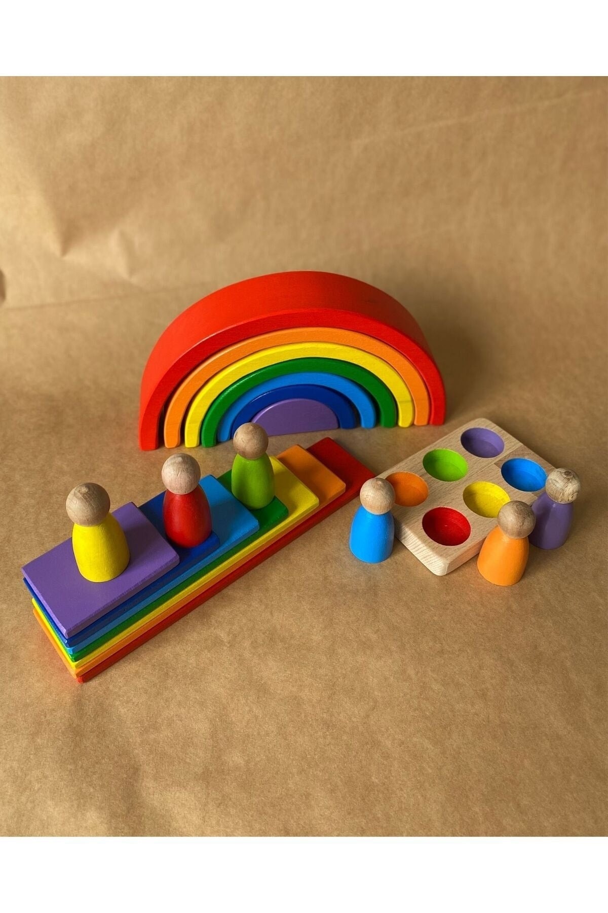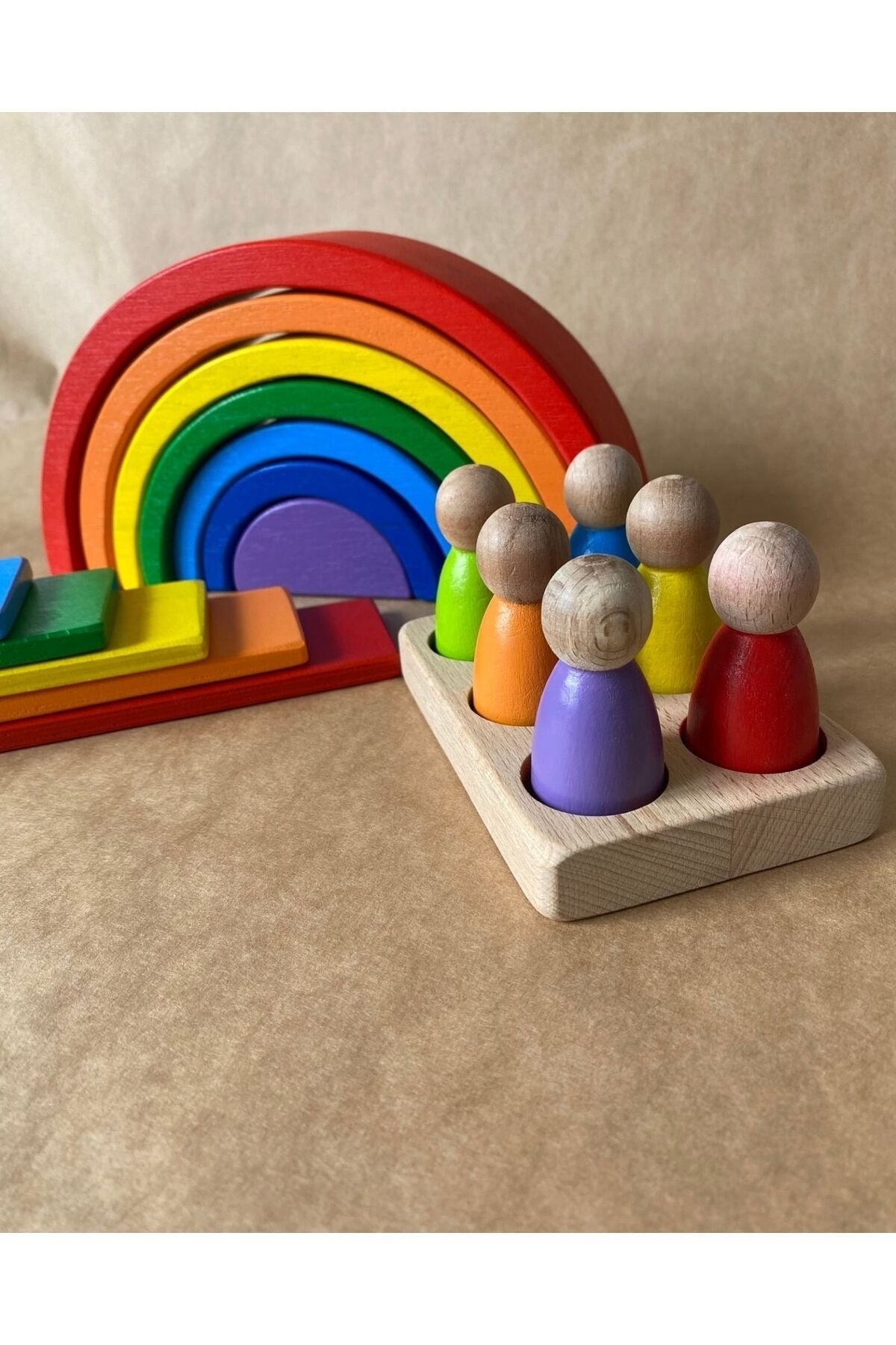 7 Pcs Waldorf Rainbow, Rectangular Flat Table Set And 6 Pcs Human Figures Play Set