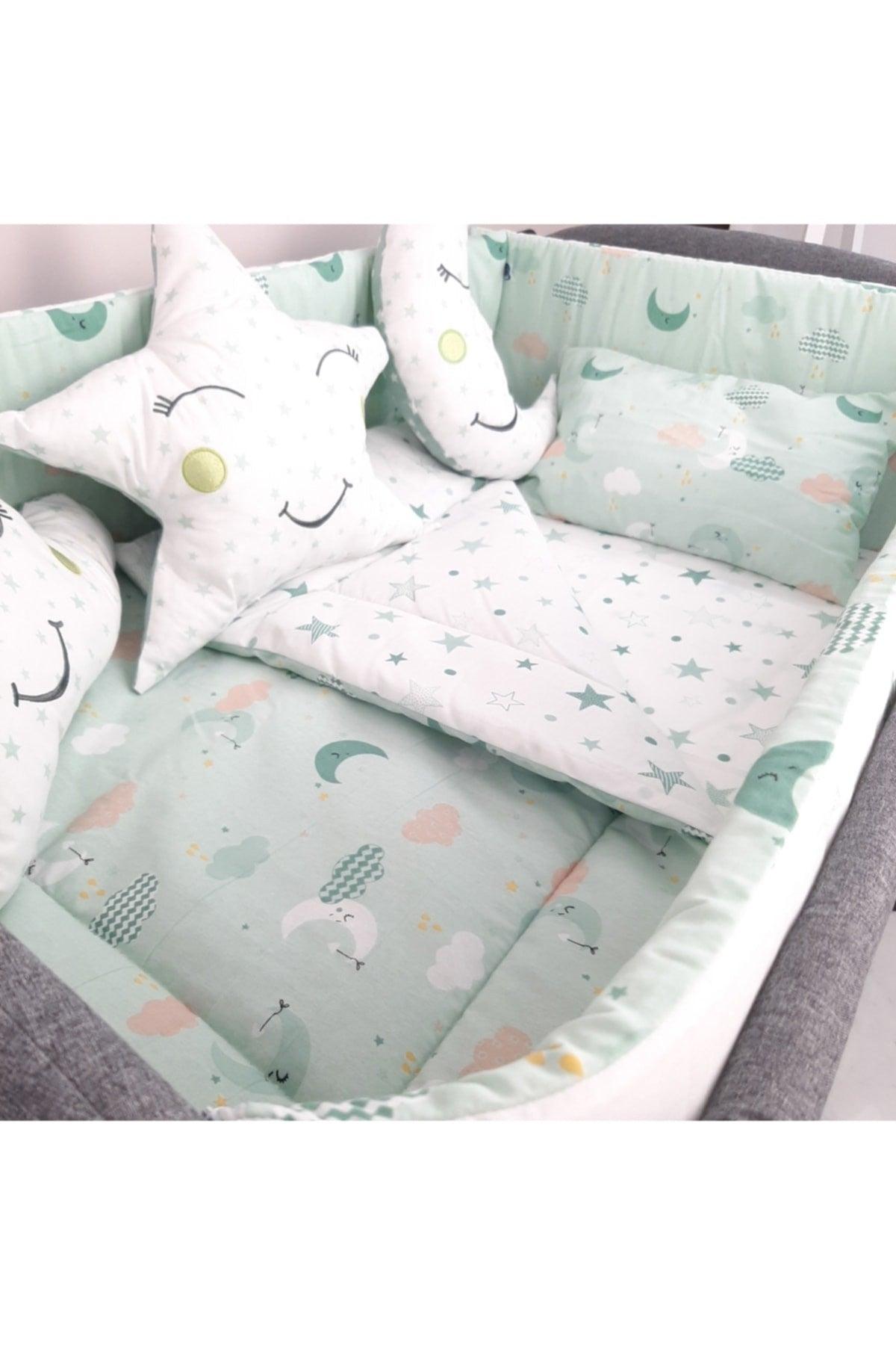 70x110 Park Betten Uygun Nane Yeşil Bulut Model Modern Uyku Seti 10parca (DEĞİL)