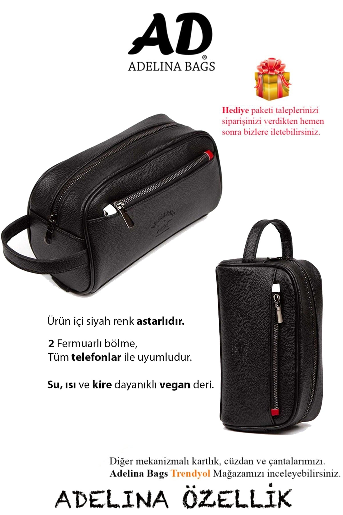 Black leather portfolio clutch bag travel shaving cosmetic clutch bag. consists of 1 main and 1 front section. it has a functional and stylish structure. product dimensions, width: 24 cm, length: 12 cm, width: 10 cm. made of waterproof, heat and dirt resistant vegan leather. phone, wallet, key, cosmetics etc. it is designed for you to carry your belongings easily. Improved version for clearer understanding and better search visibility. Suitable for users seeking detailed and reliable product information.
