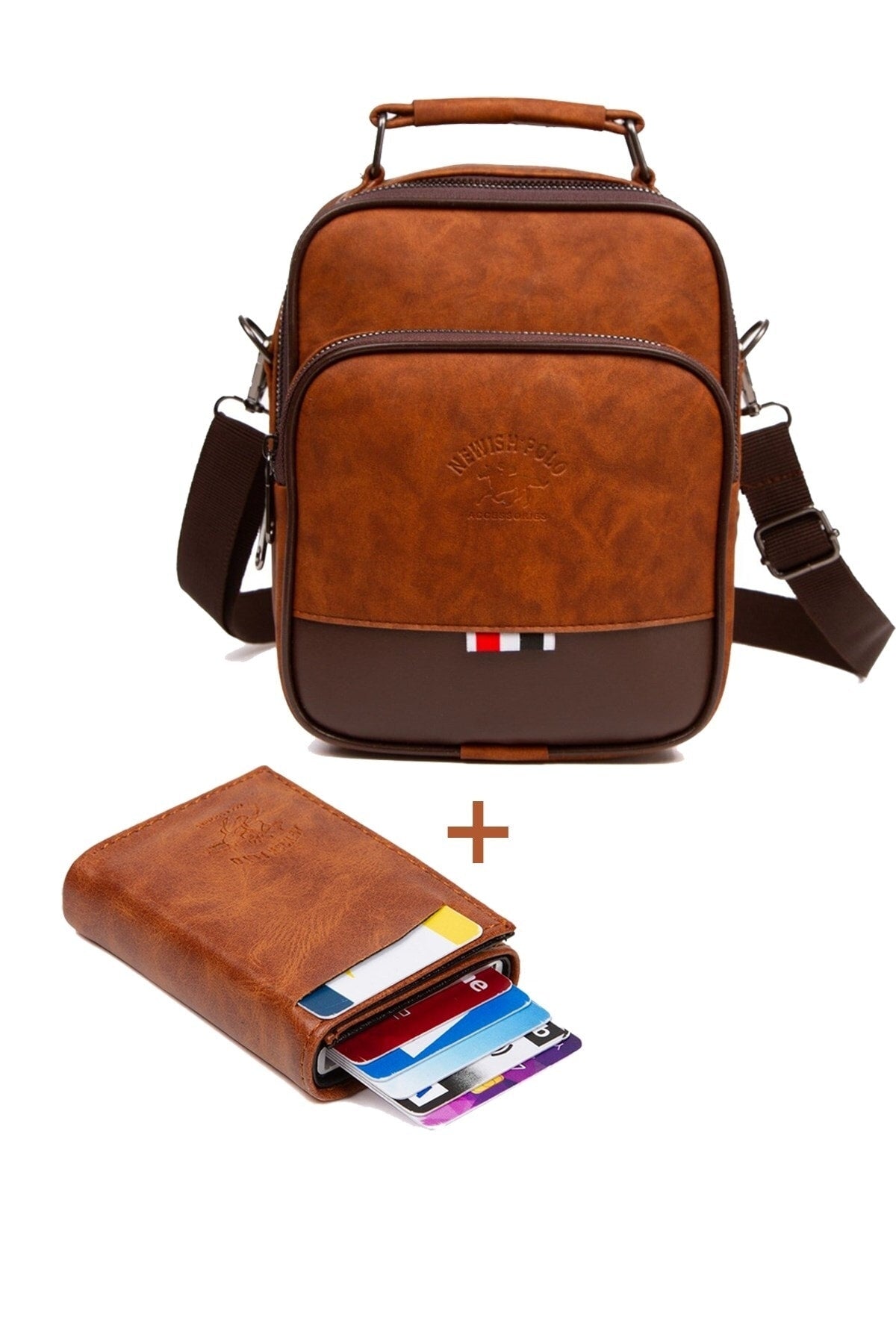 Adelina Crazy Leather Hand And Shoulder Bag And Card Holder Set With Mechanism