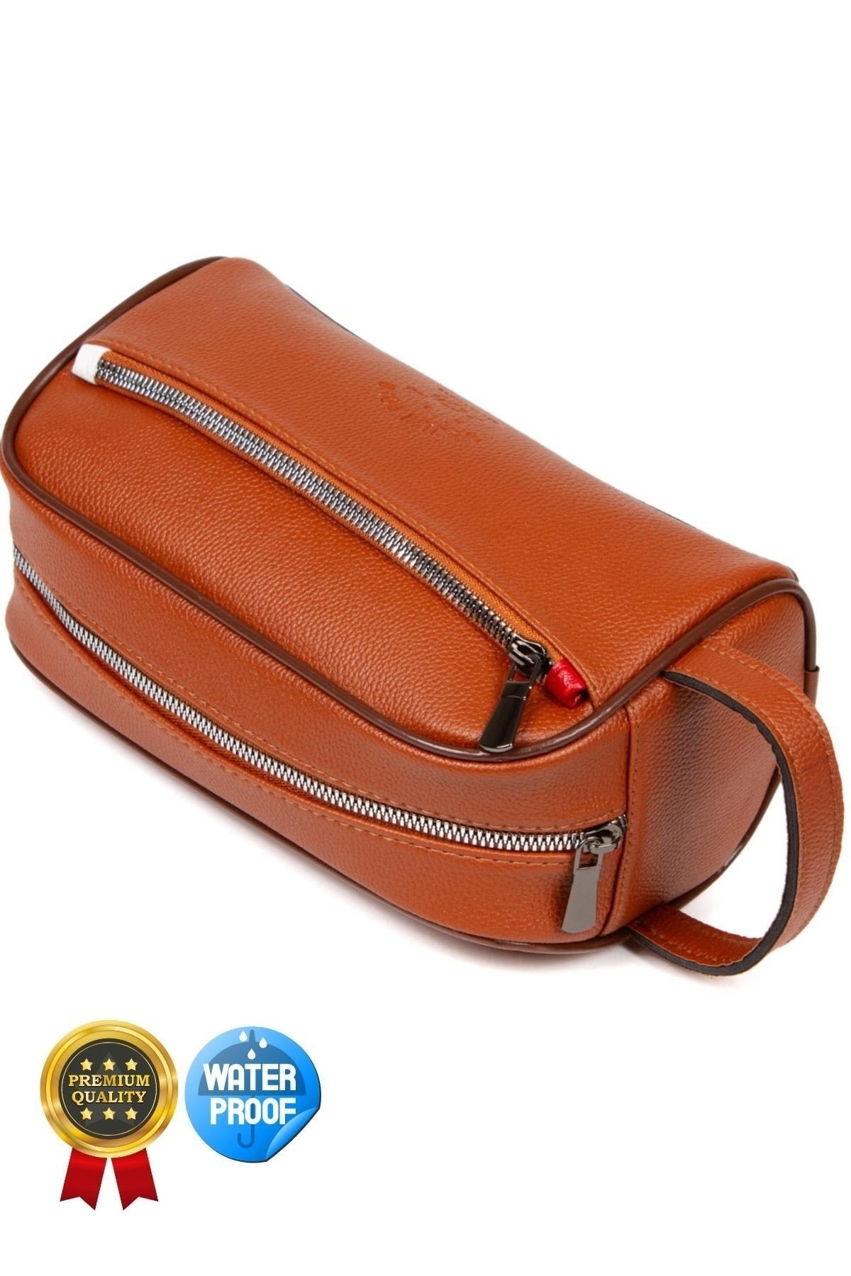 Adelina Men'S Leather Portfolio Clutch Bag Travel Shaving Cosmetic Clutch Bag Brown