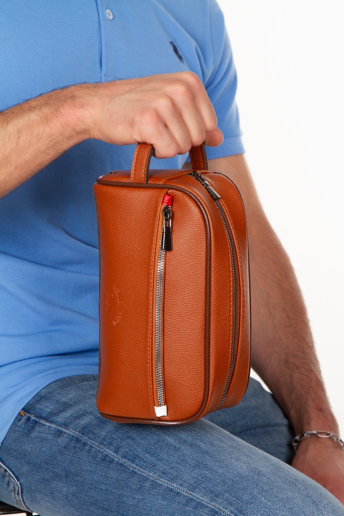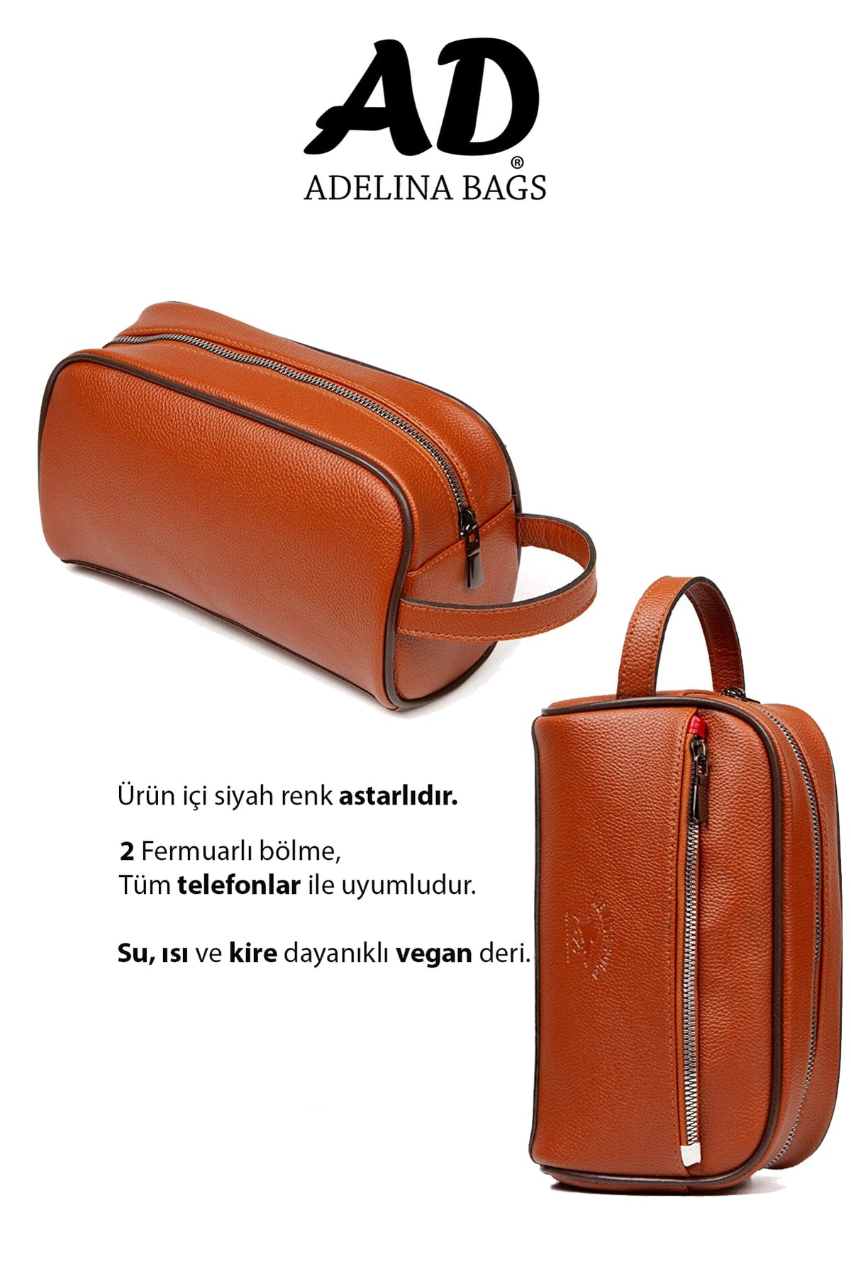 Men's leather portfolio clutch bag travel shaving cosmetic clutch bag. consists of 1 main and 1 front section. it has a functional and stylish structure. product dimensions, width: 24 cm, length: 12 cm, width: 10 cm. made of waterproof, heat and dirt resistant vegan leather. Improved version for clearer understanding and better search visibility. Suitable for users seeking detailed and reliable product information.